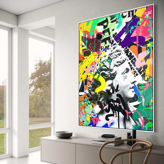 Unsere Pop Art Wandbilder führen diesen Ansatz weiter – mit kraftvollen Motiven und urbaner Haltung. Künstler wie RS Artist, Michiel Folkers und TOMADEE bringen zeitgenössische Pop Art auf Leinwand: mal roh und collageartig, mal verspielt und farbgewaltig, aber immer mit klarer Botschaft.