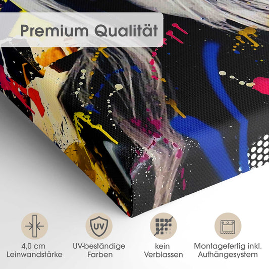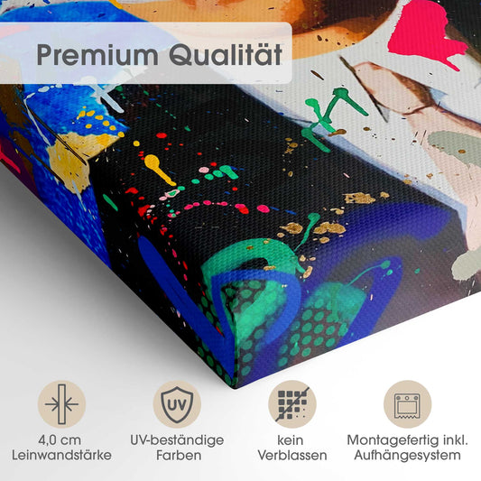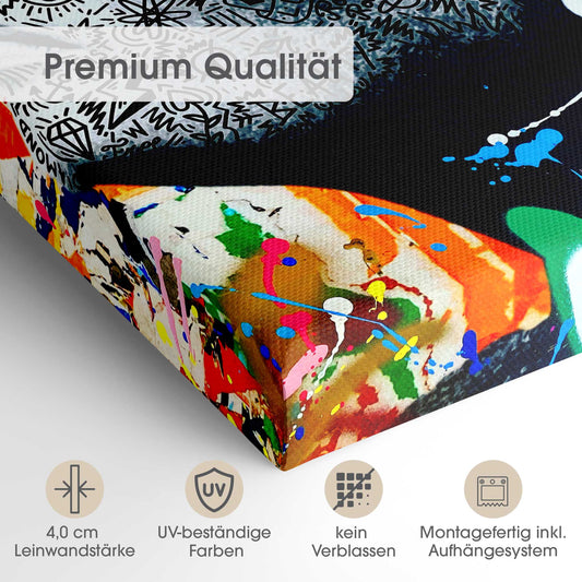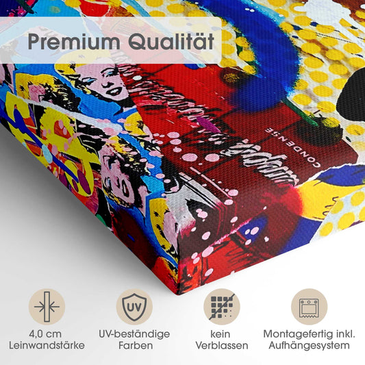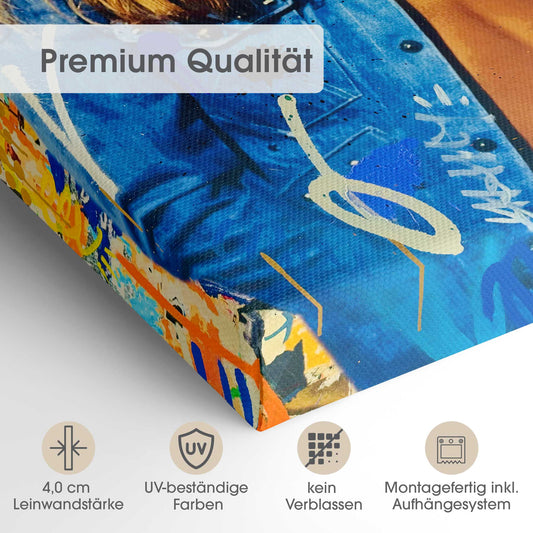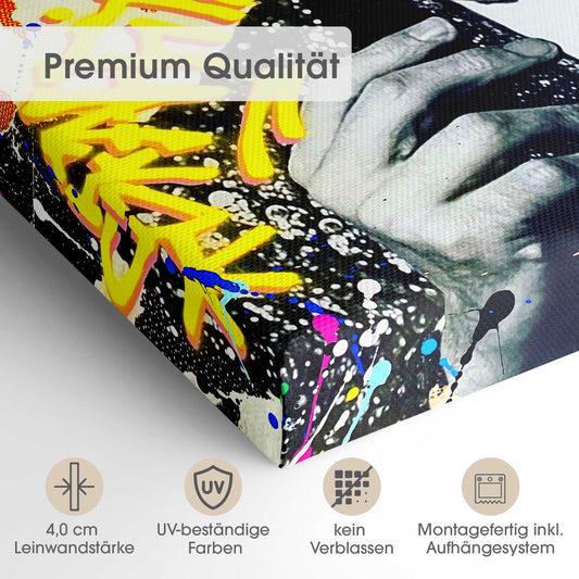 Unsere Pop Art Wandbilder führen diesen Ansatz weiter – mit kraftvollen Motiven und urbaner Haltung. Künstler wie RS Artist, Michiel Folkers und TOMADEE bringen zeitgenössische Pop Art auf Leinwand: mal roh und collageartig, mal verspielt und farbgewaltig, aber immer mit klarer Botschaft.