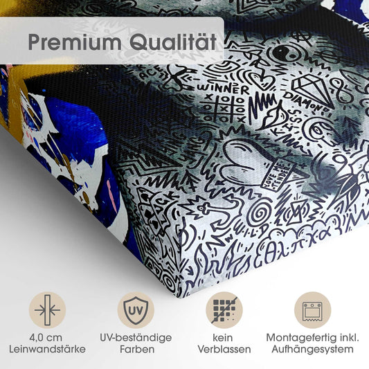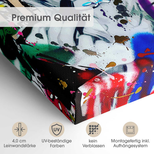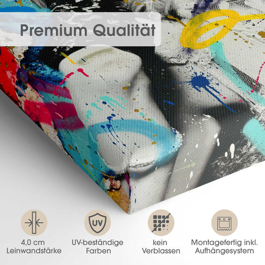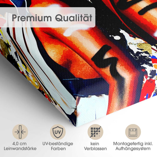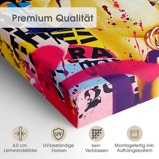 Unsere Pop Art Wandbilder führen diesen Ansatz weiter – mit kraftvollen Motiven und urbaner Haltung. Künstler wie RS Artist, Michiel Folkers und TOMADEE bringen zeitgenössische Pop Art auf Leinwand: mal roh und collageartig, mal verspielt und farbgewaltig, aber immer mit klarer Botschaft.