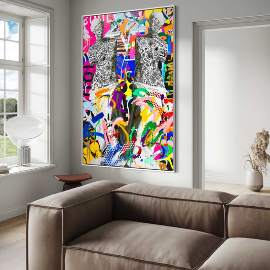 Unsere Pop Art Wandbilder führen diesen Ansatz weiter – mit kraftvollen Motiven und urbaner Haltung. Künstler wie RS Artist, Michiel Folkers und TOMADEE bringen zeitgenössische Pop Art auf Leinwand: mal roh und collageartig, mal verspielt und farbgewaltig, aber immer mit klarer Botschaft.