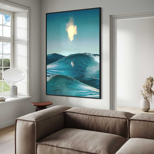 Surrealistische Wandbilder eignen sich hervorragend, um Räumen eine traumhafte und faszinierende Atmosphäre zu verleihen, die die Fantasie anregt und den Raum mit einem Hauch von Geheimnis und Tiefe erfüllt.