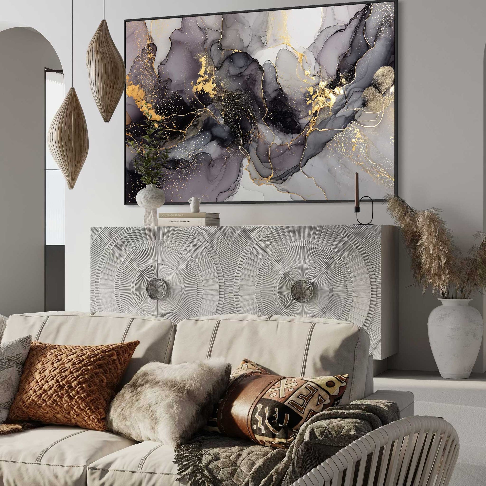 leading art fairs: in a wooden gallery frame with a shadow gap. There is a 10 mm wide shadow gap between your acrylic glass artwork with aluminum carrier plate and the frame strip - this makes the artwork appear to float in the wooden frame.