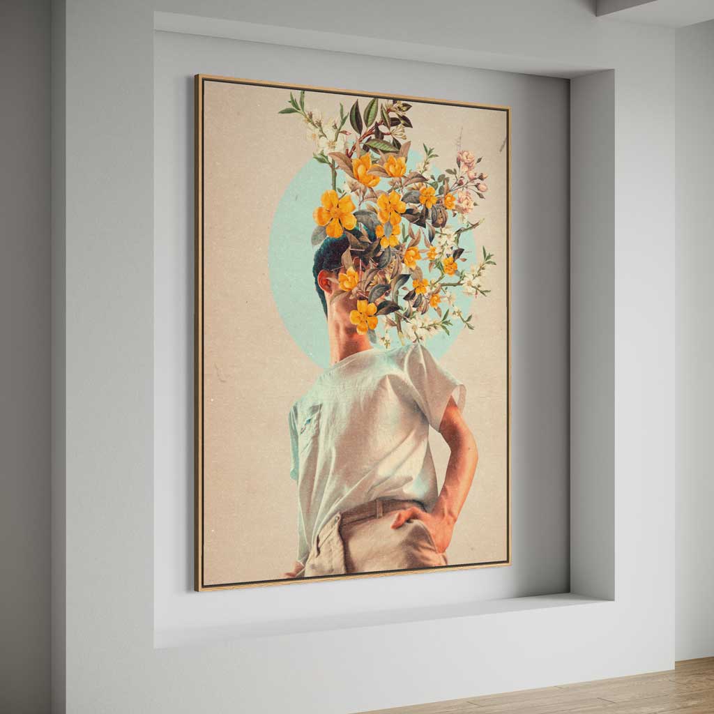 leading art fairs: in a wooden gallery frame with a shadow gap. There is a 10 mm wide shadow gap between your acrylic glass artwork with aluminum carrier plate and the frame strip - this makes the artwork appear to float in the wooden frame.