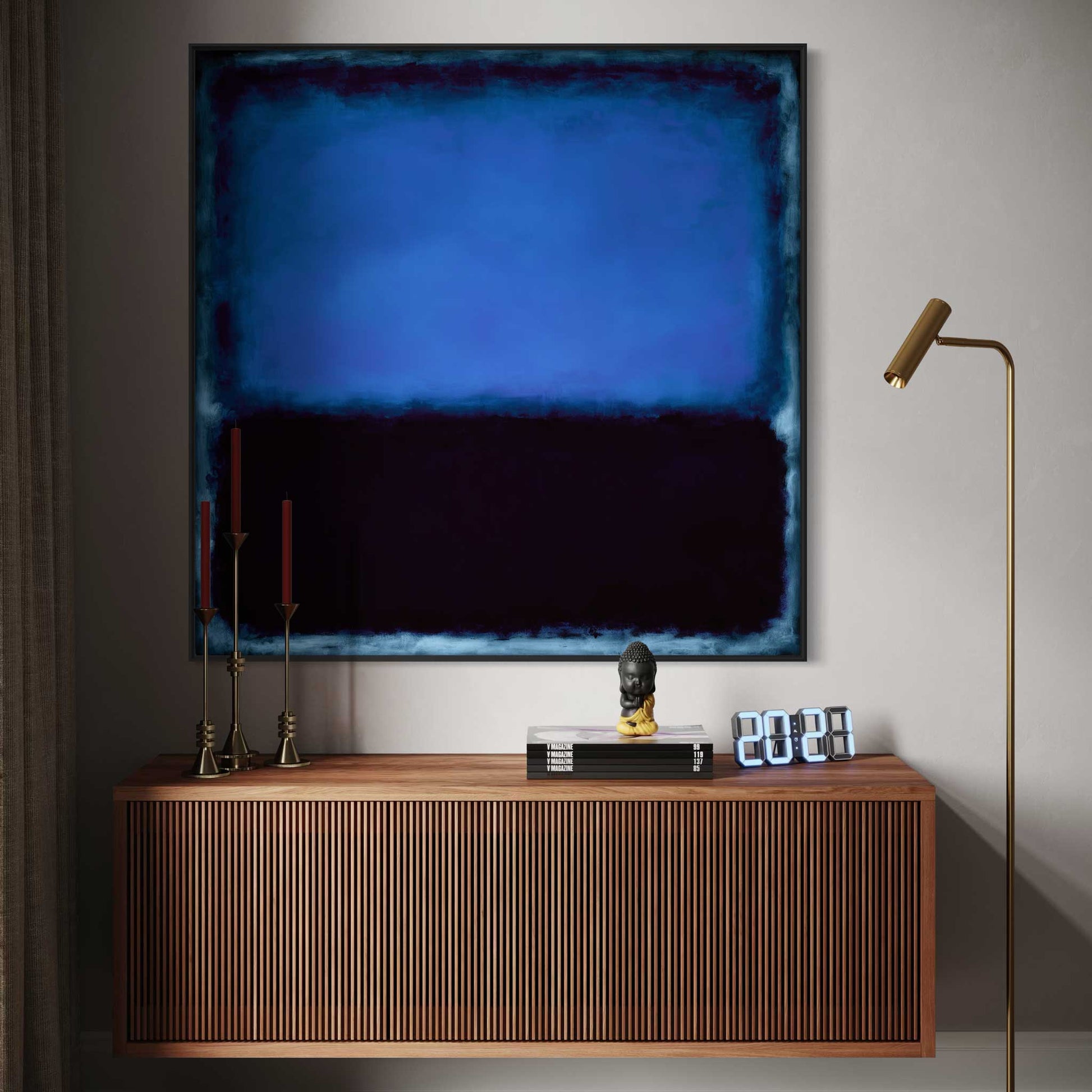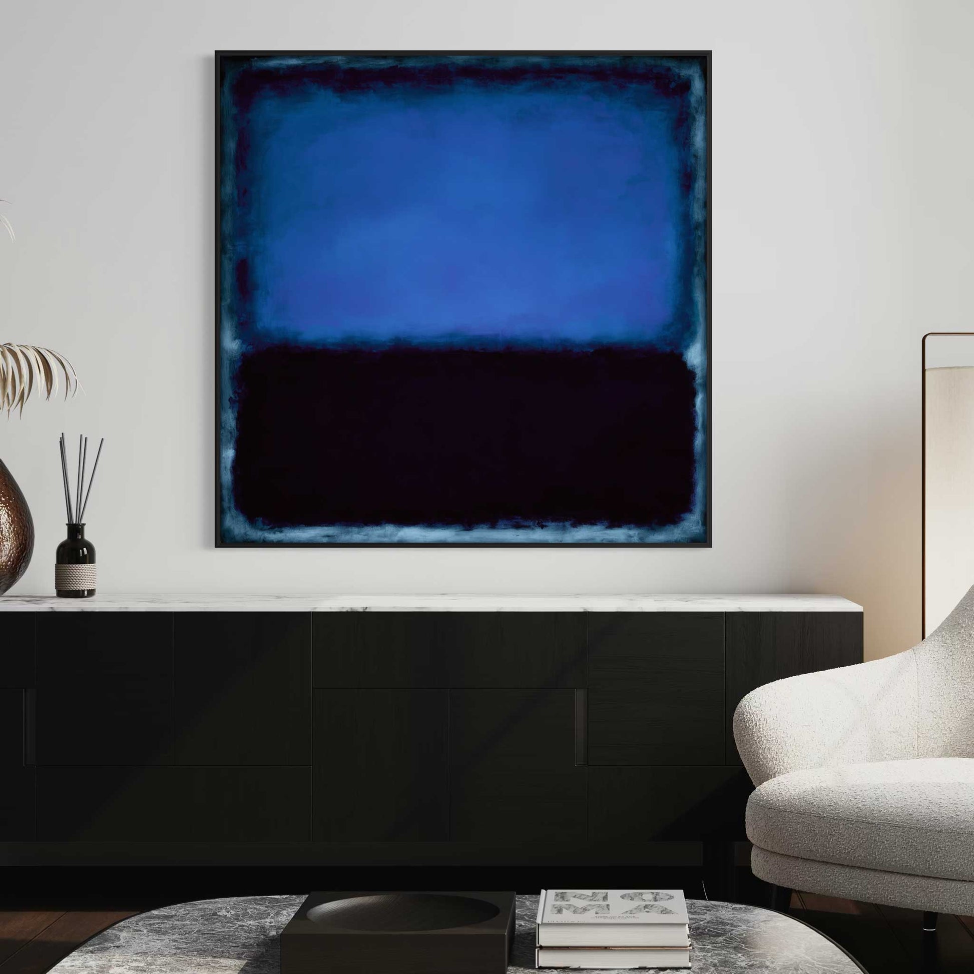 leading art fairs: in a wooden gallery frame with a shadow gap. There is a 10 mm wide shadow gap between your acrylic glass artwork with aluminum carrier plate and the frame strip - this makes the artwork appear to float in the wooden frame.