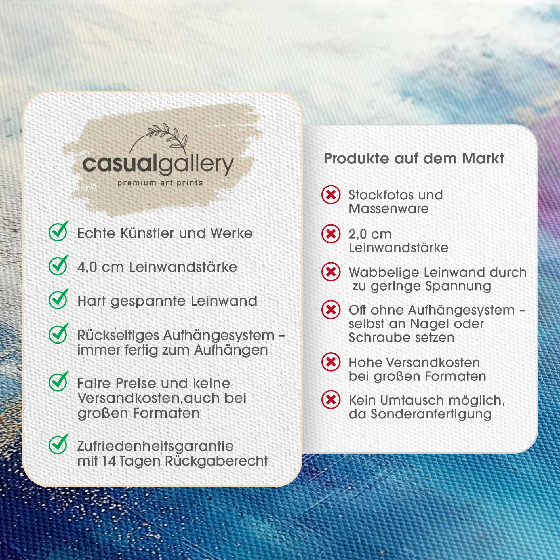 We hope you are happy with your casualgallery artwork. If you want a different product, a different size or a refund, we still accept exchanges and returns within 14 days.