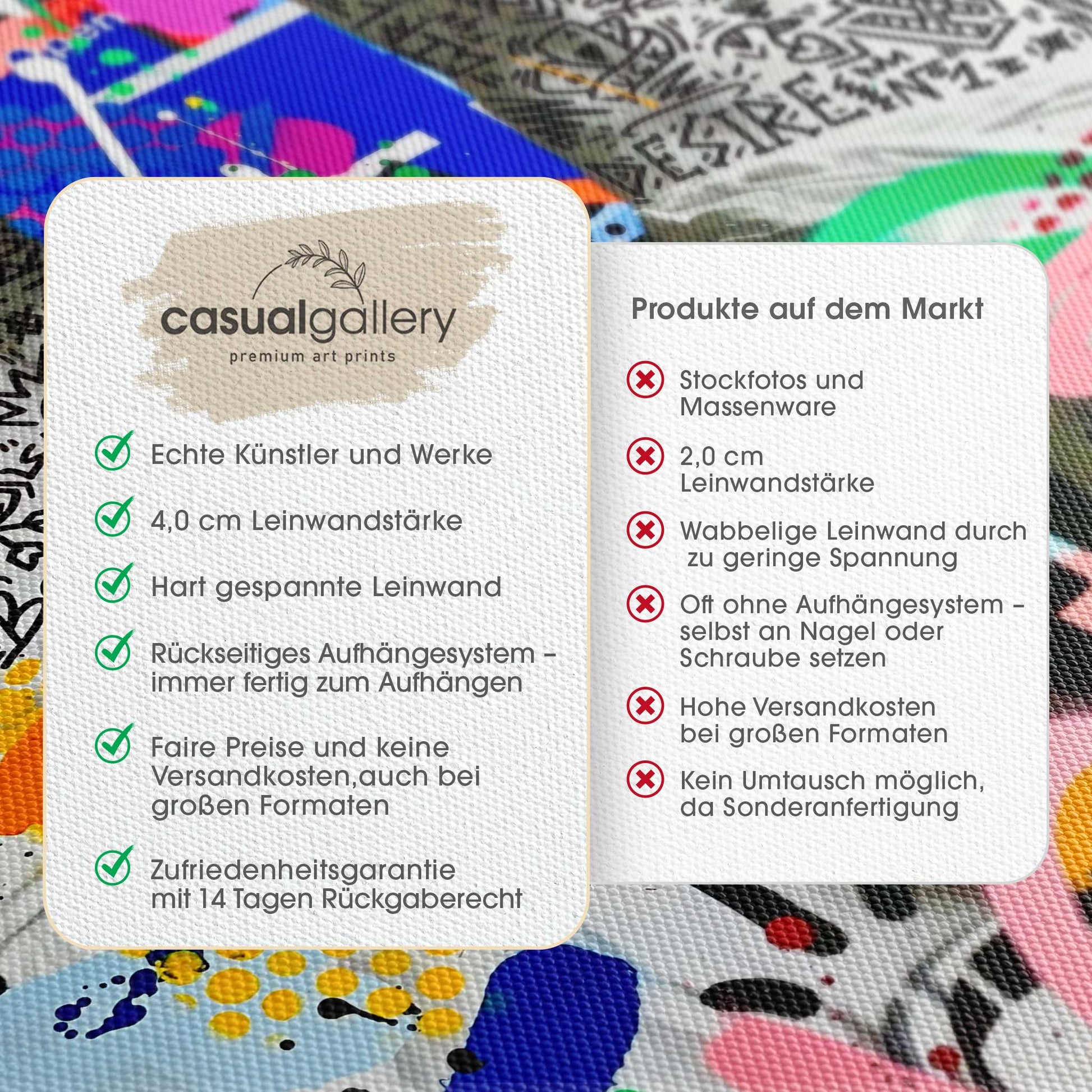 We hope you are happy with your casualgallery artwork. If you want a different product, a different size or a refund, we still accept exchanges and returns within 14 days.