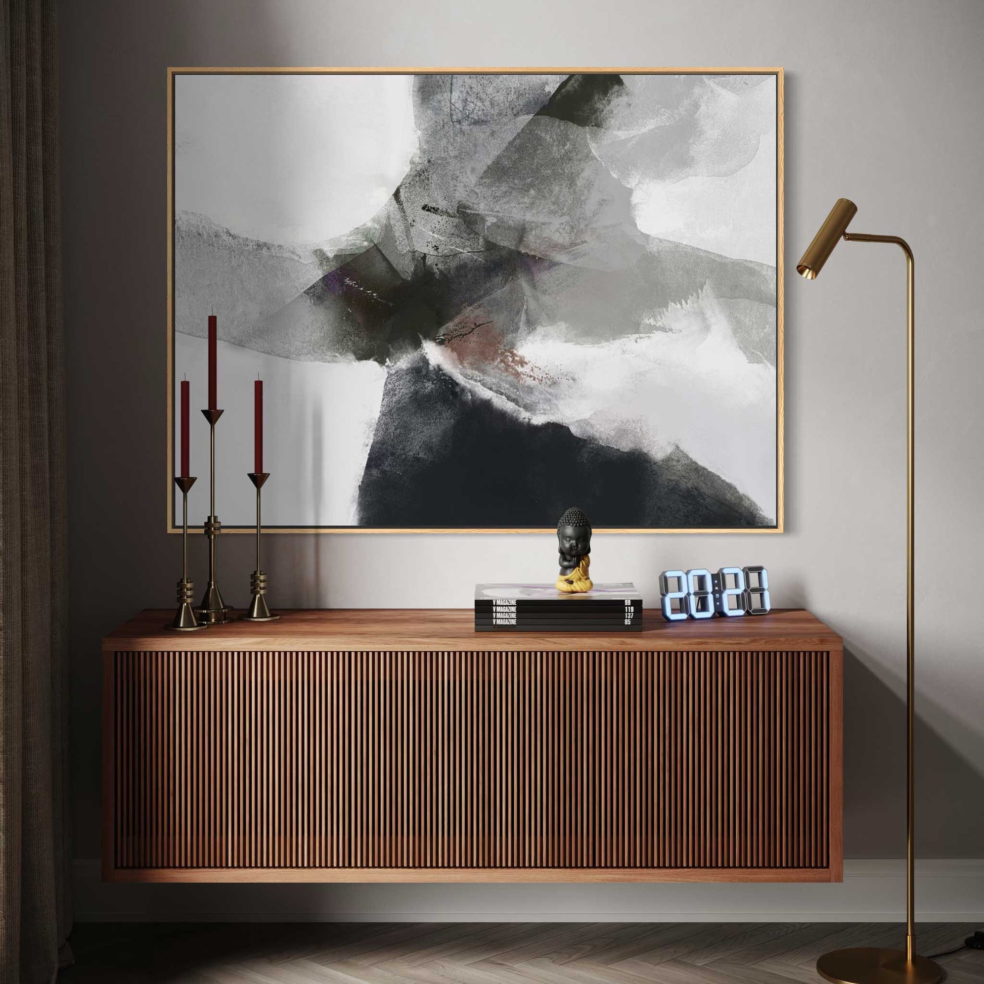 leading art fairs: in a wooden gallery frame with a shadow gap. There is a 10 mm wide shadow gap between your acrylic glass artwork with aluminum carrier plate and the frame strip - this makes the artwork appear to float in the wooden frame.