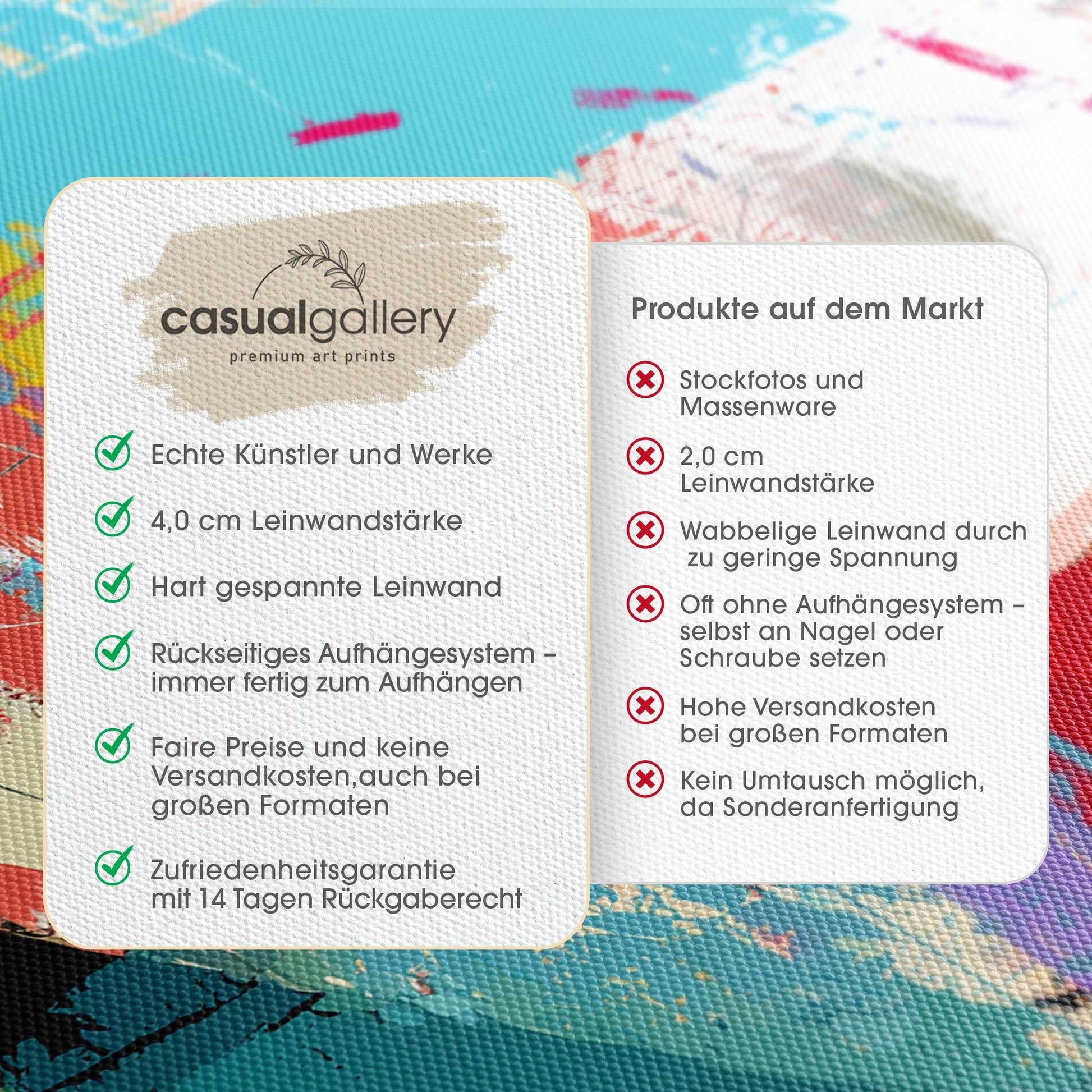We hope you are happy with your casualgallery artwork. If you want a different product, a different size or a refund, we still accept exchanges and returns within 14 days.