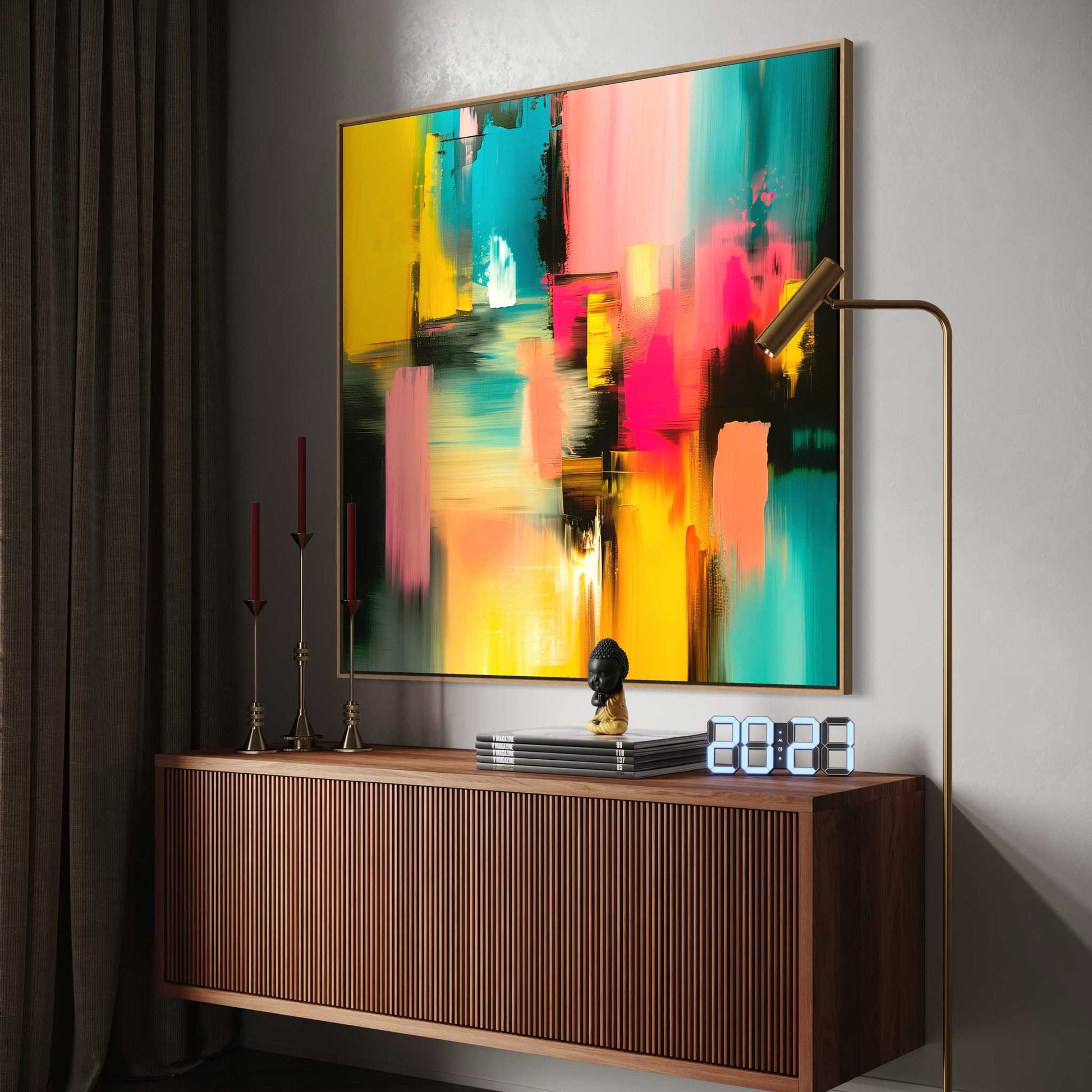 leading art fairs: in a wooden gallery frame with a shadow gap. There is a 10 mm wide shadow gap between your acrylic glass artwork with aluminum carrier plate and the frame strip - this makes the artwork appear to float in the wooden frame.