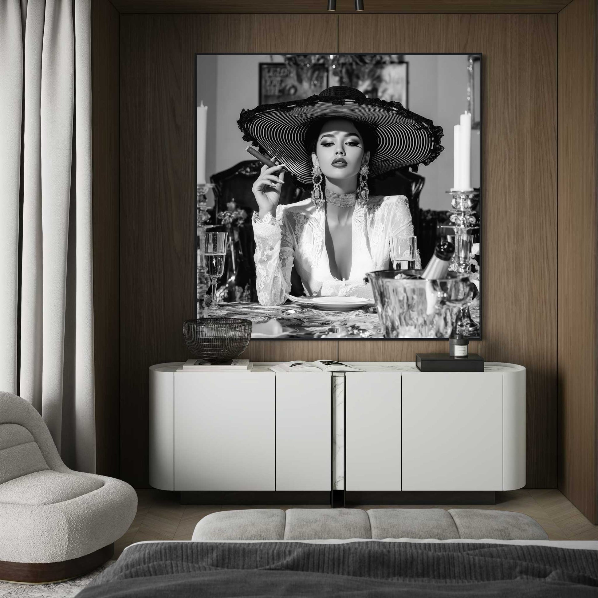 leading art fairs: in a wooden gallery frame with a shadow gap. There is a 10 mm wide shadow gap between your acrylic glass artwork with aluminum carrier plate and the frame strip - this makes the artwork appear to float in the wooden frame.