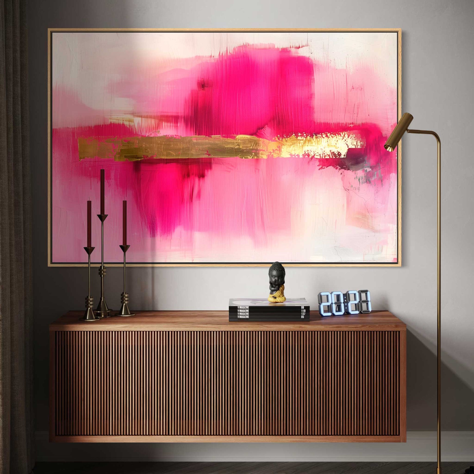leading art fairs: in a wooden gallery frame with a shadow gap. There is a 10 mm wide shadow gap between your acrylic glass artwork with aluminum carrier plate and the frame strip - this makes the artwork appear to float in the wooden frame.