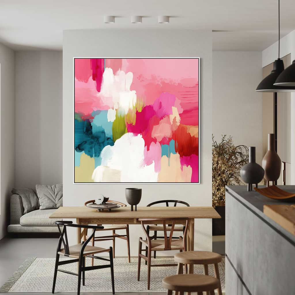 leading art fairs: in a wooden gallery frame with a shadow gap. There is a 10 mm wide shadow gap between your acrylic glass artwork with aluminum carrier plate and the frame strip - this makes the artwork appear to float in the wooden frame.