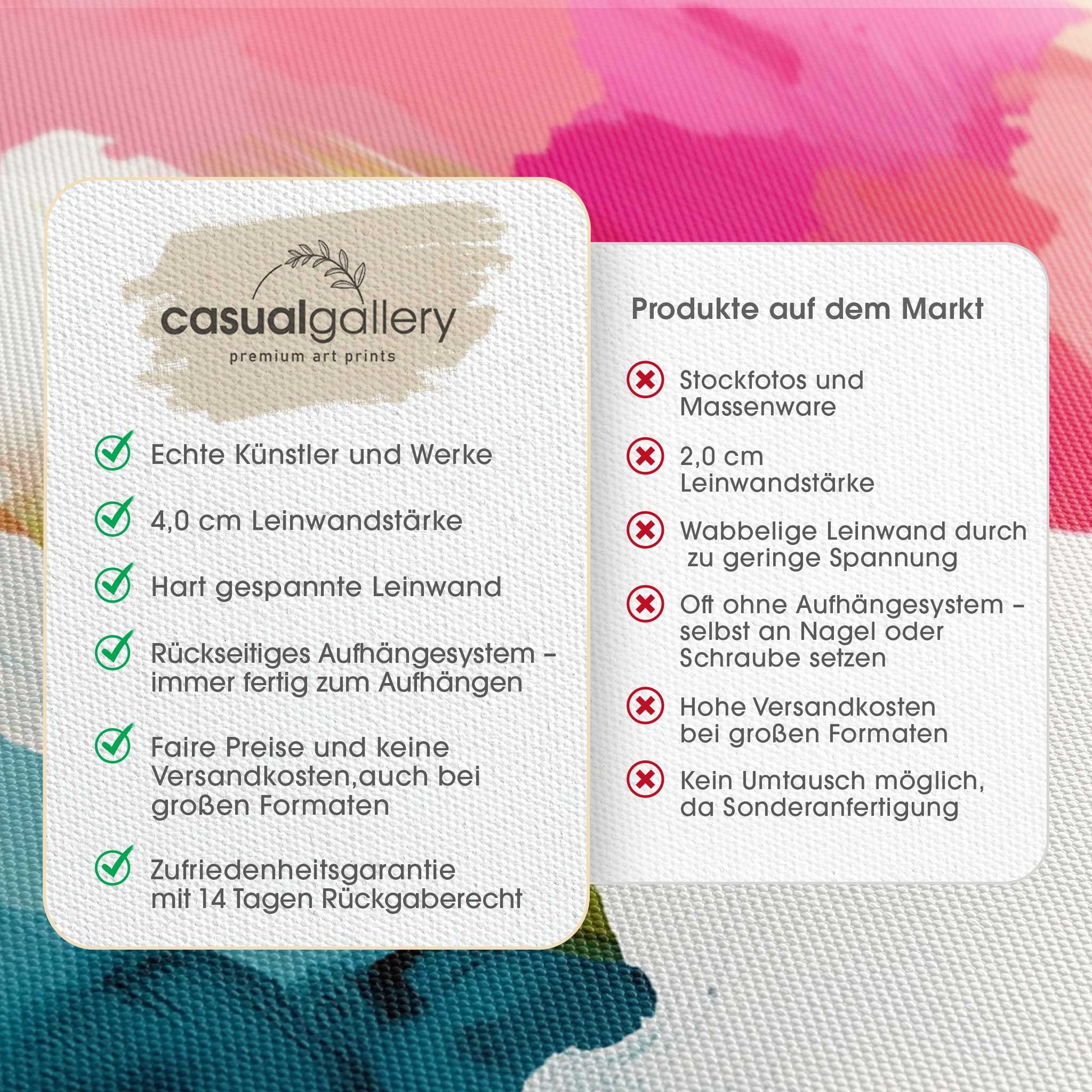 We hope you are happy with your casualgallery artwork. If you want a different product, a different size or a refund, we still accept exchanges and returns within 14 days.