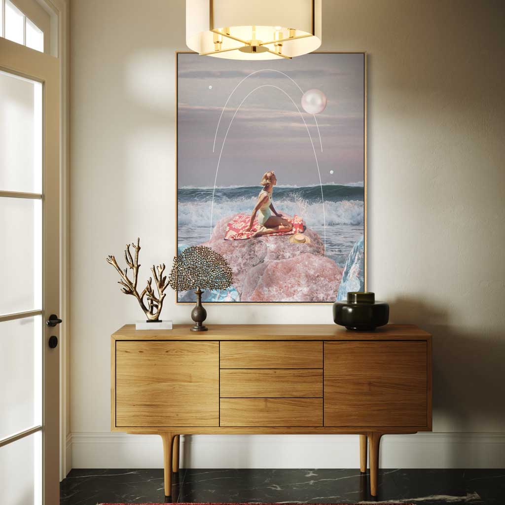 leading art fairs: in a wooden gallery frame with a shadow gap. There is a 10 mm wide shadow gap between your acrylic glass artwork with aluminum carrier plate and the frame strip - this makes the artwork appear to float in the wooden frame.