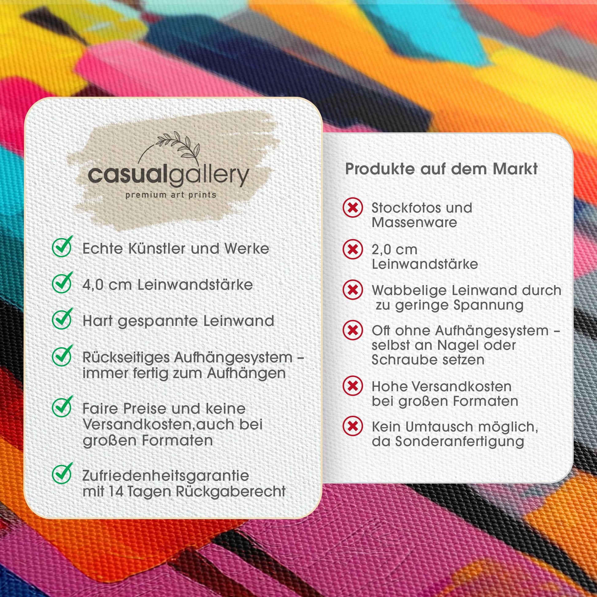 We hope you are happy with your casualgallery artwork. If you want a different product, a different size or a refund, we still accept exchanges and returns within 14 days.