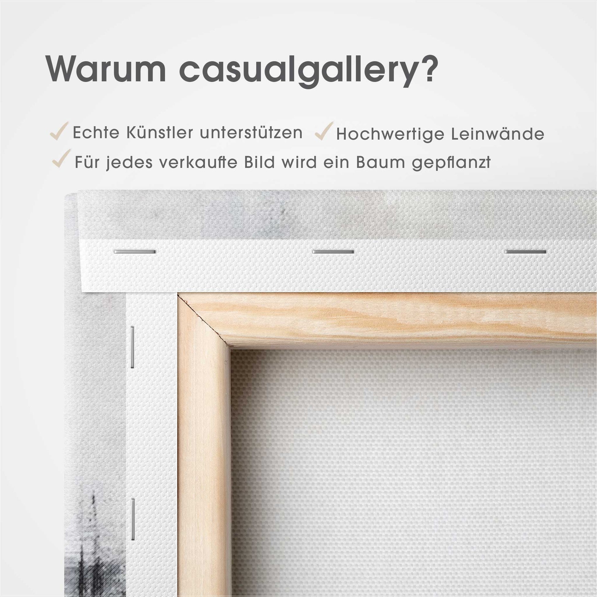 Der 4,0 cm starke Holzrahmen verleiht der Leinwand Tiefe und Stabilität. Jedes Bild wird sorgfältig aufgespannt, die Kanten sauber verarbeitet. Deine Leinwand kommt fix & fertig bei dir an – einfach auspacken, aufhängen und den neuen Look genießen.