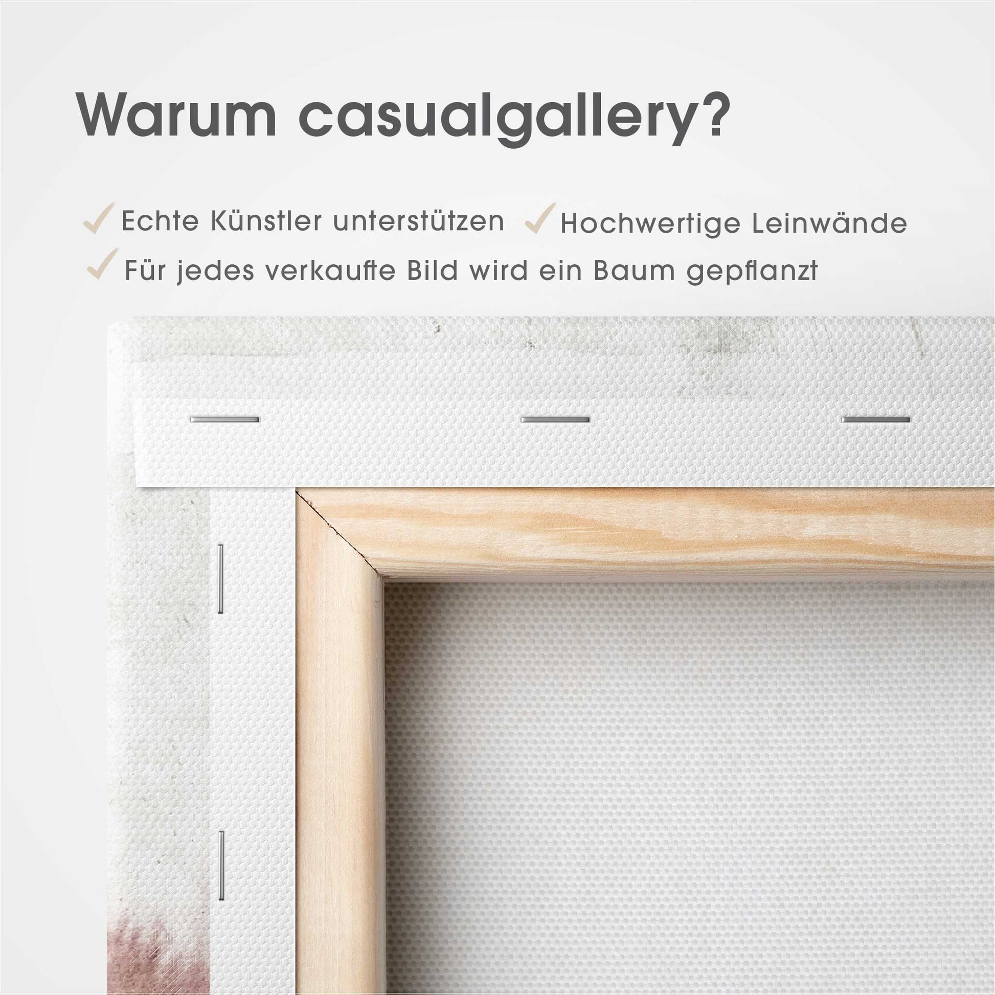 Der 4,0 cm starke Holzrahmen verleiht der Leinwand Tiefe und Stabilität. Jedes Bild wird sorgfältig aufgespannt, die Kanten sauber verarbeitet. Deine Leinwand kommt fix & fertig bei dir an – einfach auspacken, aufhängen und den neuen Look genießen.