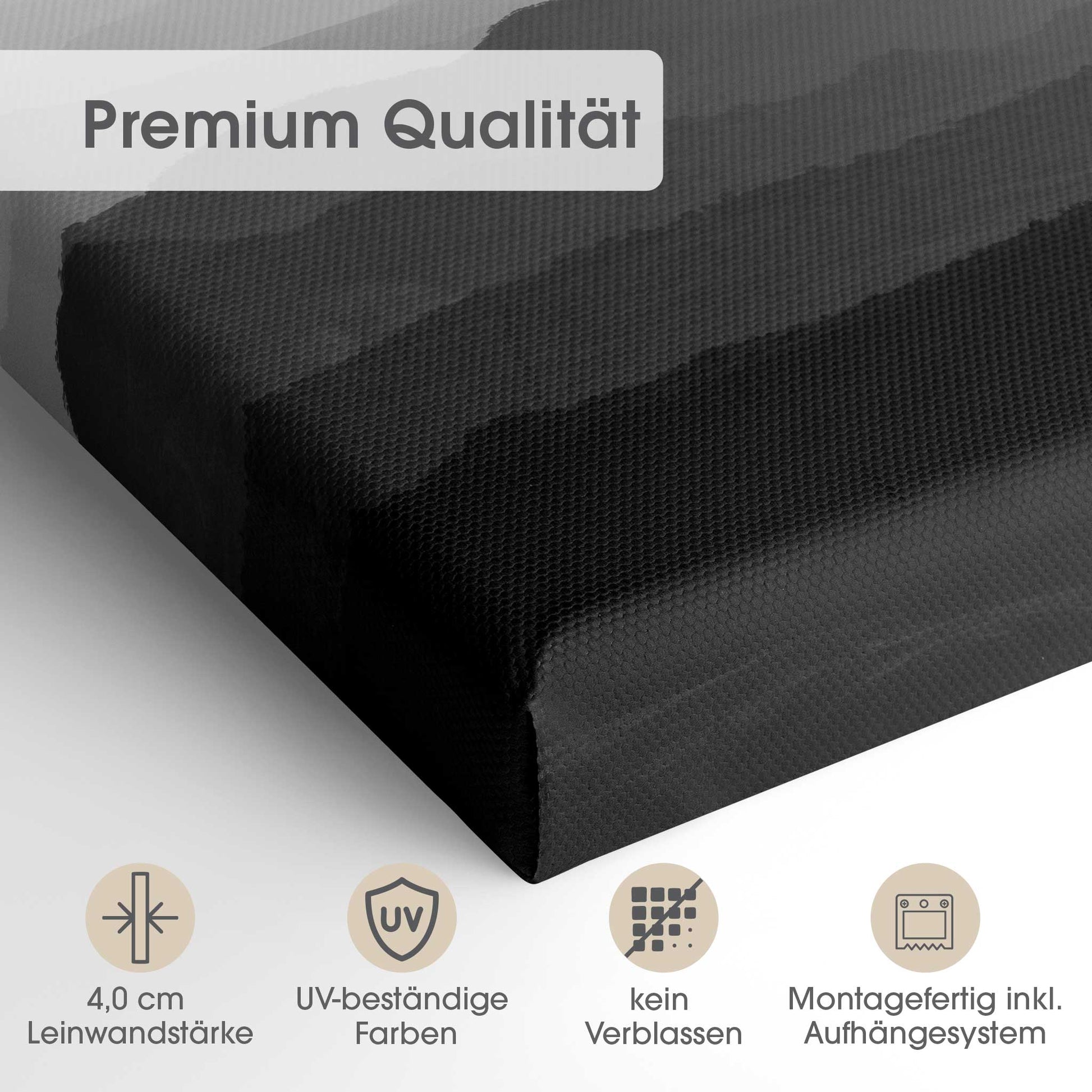 Der 4,0 cm starke Holzrahmen verleiht der Leinwand Tiefe und Stabilität. Jedes Bild wird sorgfältig aufgespannt, die Kanten sauber verarbeitet. Deine Leinwand kommt fix & fertig bei dir an – einfach auspacken, aufhängen und den neuen Look genießen.