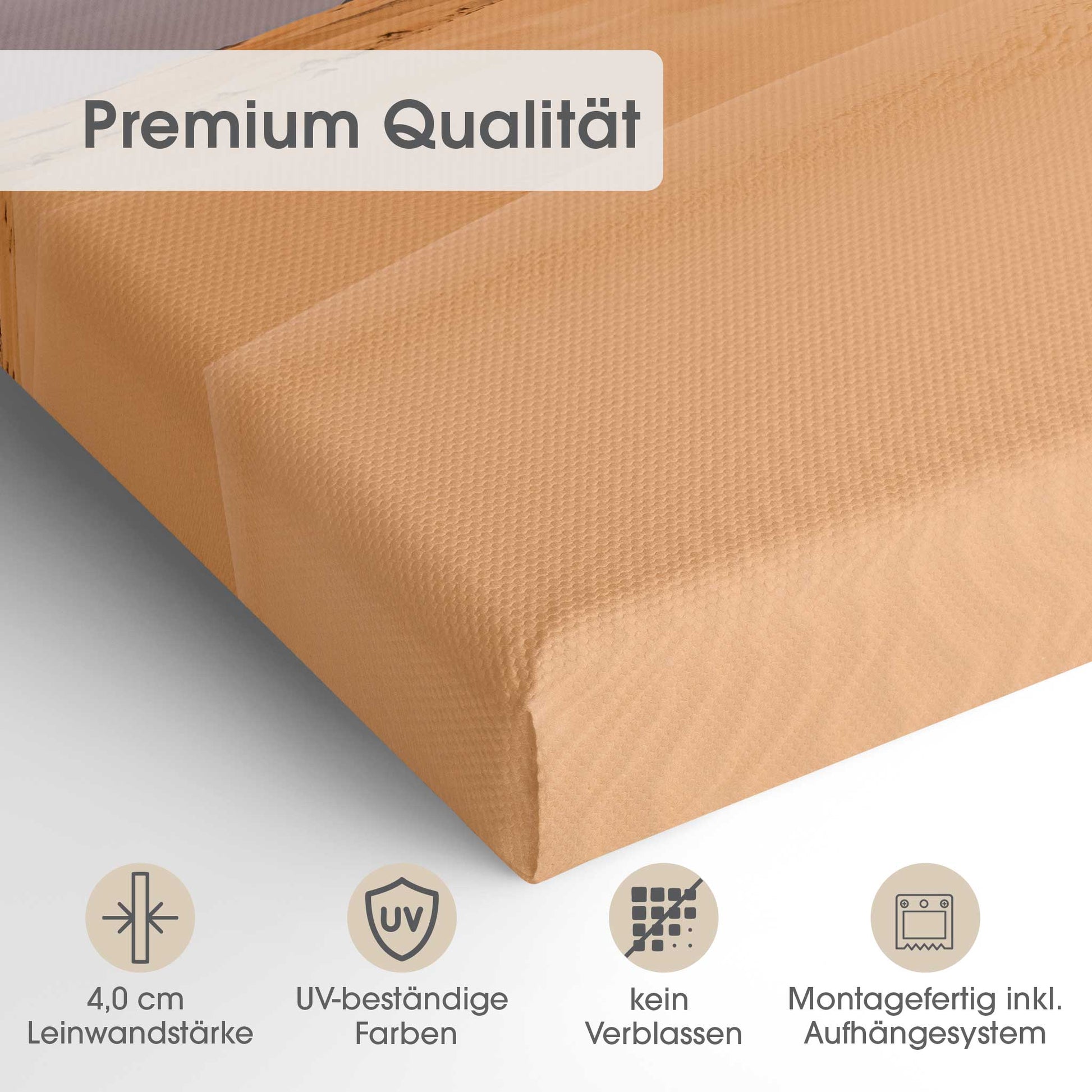 Satte Farben, gestochen scharfe Details, UV-beständig. Auf 4,0 cm starken Holzrahmen gespannt und direkt fertig zum Aufhängen geliefert.