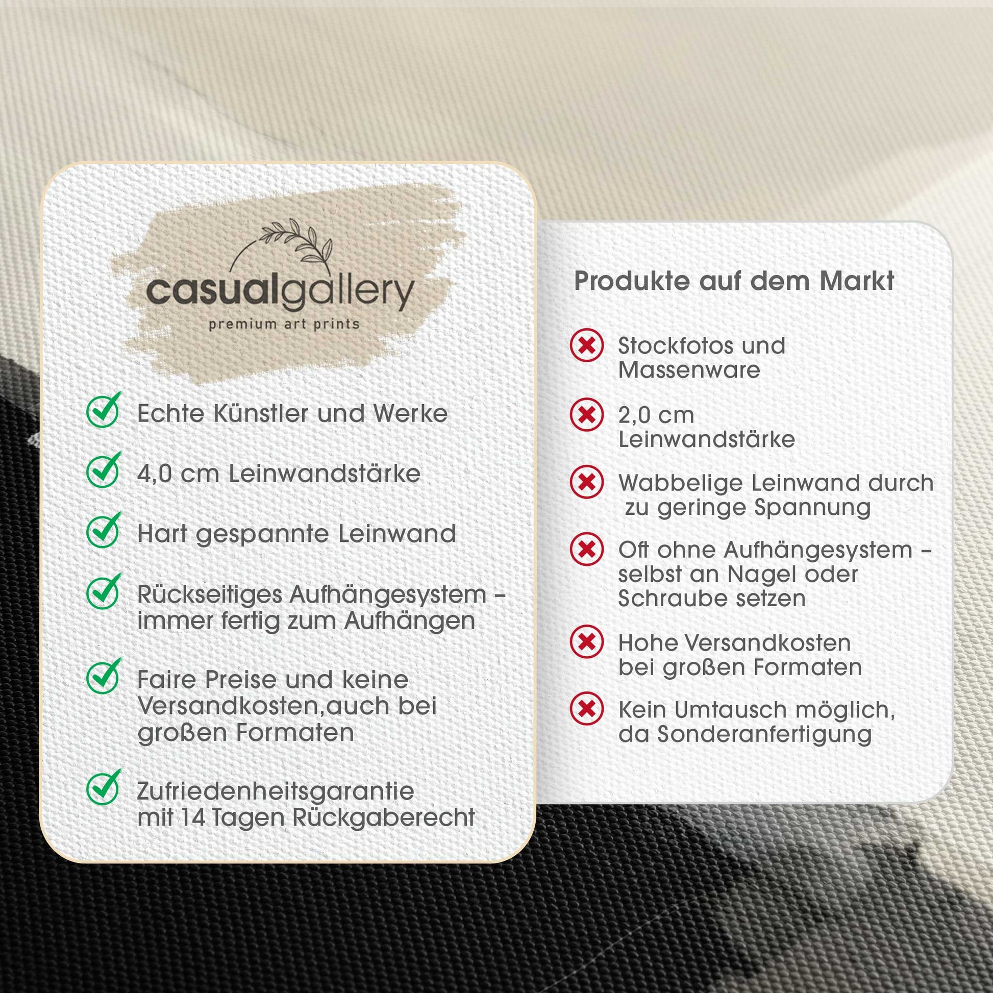 Wir hoffen, dass du mit deinem casualgallery Kunstwerk zufrieden bist. Wenn du ein anderes Produkt, eine andere Größe oder eine Rückerstattung wünscht, akzeptieren wir dennoch Umtausch und Rücksendungen innerhalb von 14 Tagen.