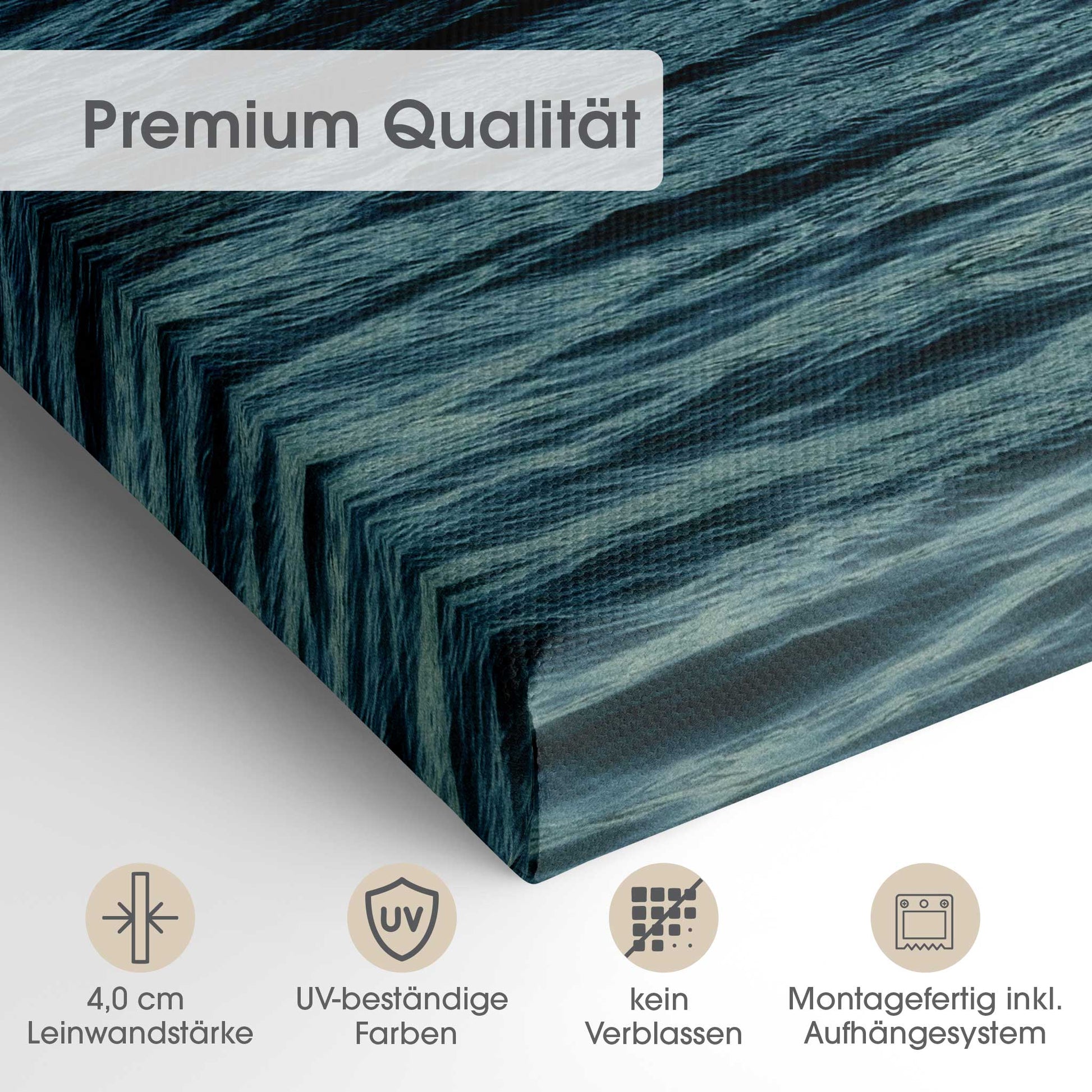 Der 4,0 cm starke Holzrahmen verleiht der Leinwand Tiefe und Stabilität. Jedes Bild wird sorgfältig aufgespannt, die Kanten sauber verarbeitet. Deine Leinwand kommt fix & fertig bei dir an – einfach auspacken, aufhängen und den neuen Look genießen.