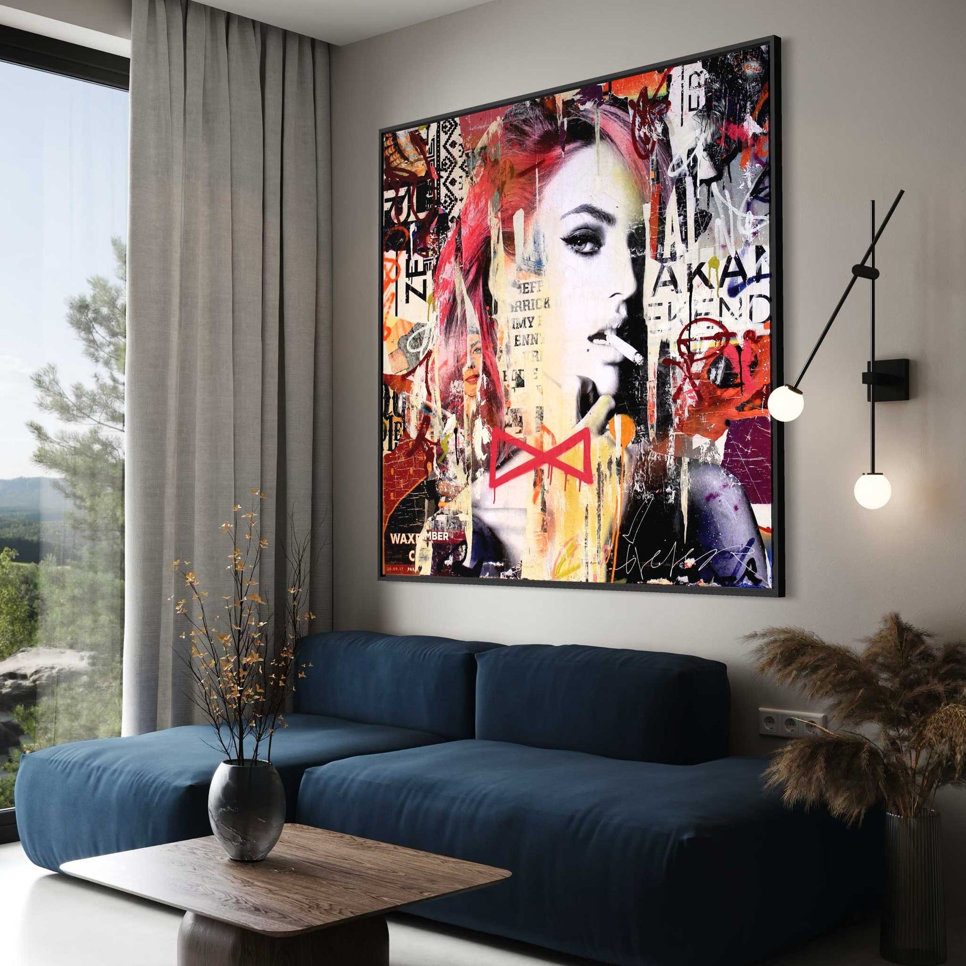 Aus handabgerissenen Plakaten, alten Werkzeugen und urbanen Fundstücken entstehen auf großen Leinwänden vielschichtige Werke mit ikonischen Persönlichkeiten wie Brigitte Bardot oder Kate Moss.