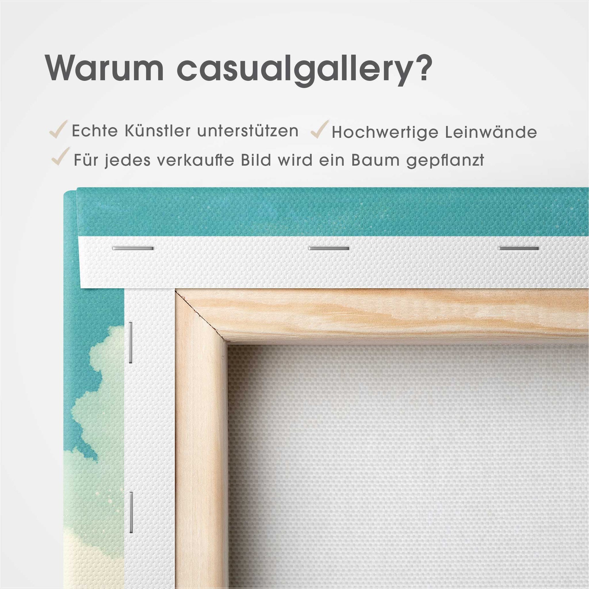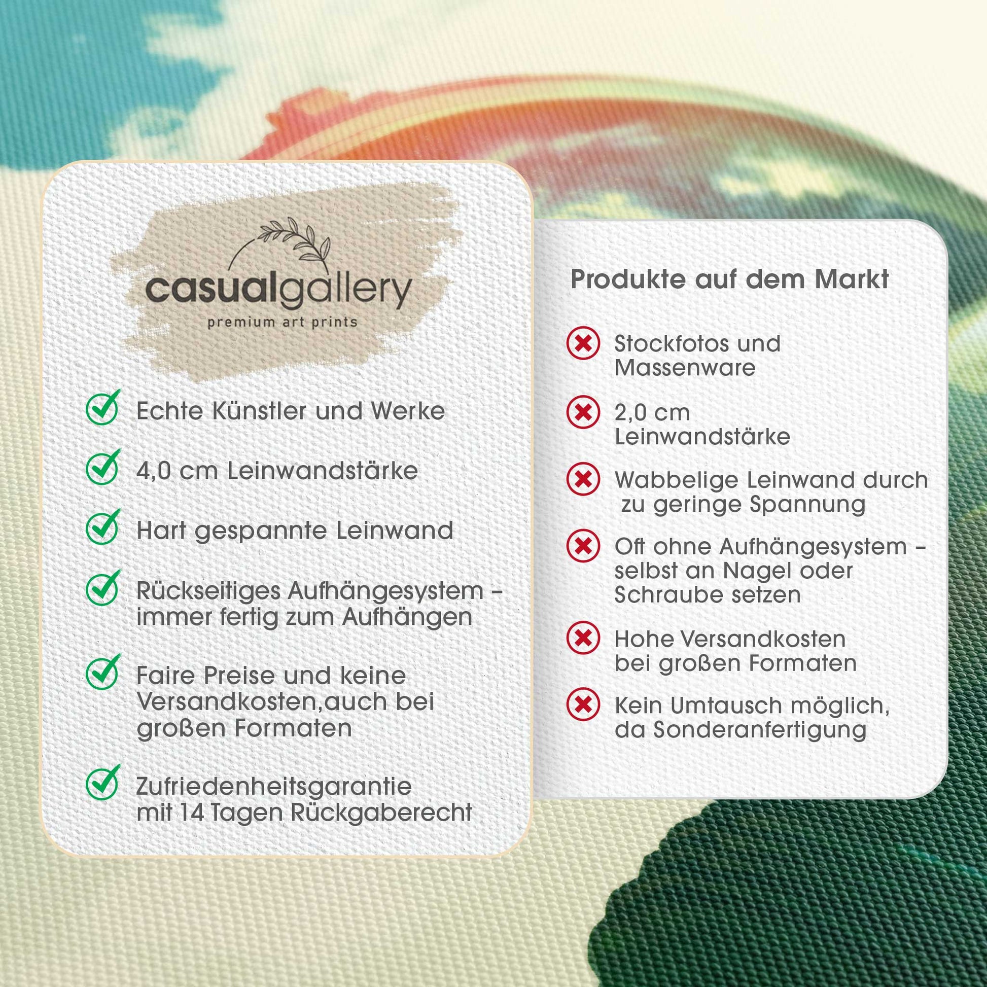 Satte Farben, gestochen scharfe Details, UV-beständig. Auf 4,0 cm starken Holzrahmen gespannt und direkt fertig zum Aufhängen geliefert.