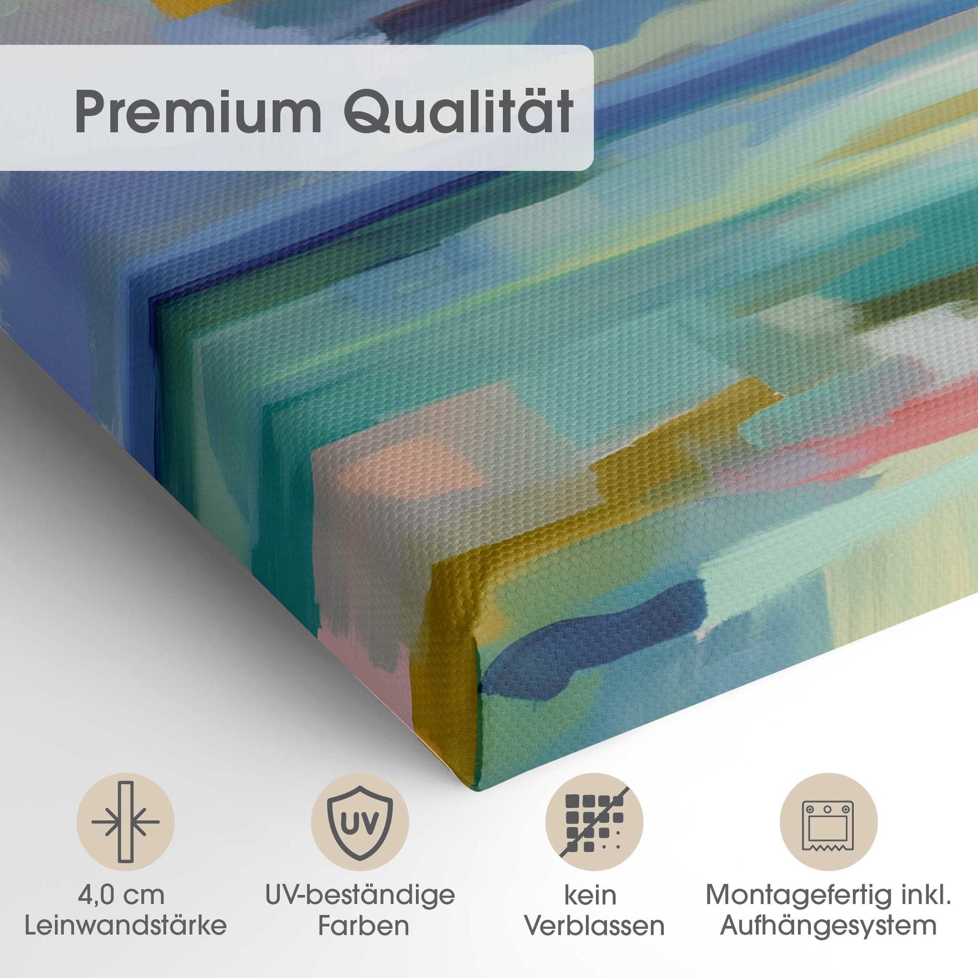 Der 4,0 cm starke Holzrahmen verleiht der Leinwand Tiefe und Stabilität. Jedes Bild wird sorgfältig aufgespannt, die Kanten sauber verarbeitet. Deine Leinwand kommt fix & fertig bei dir an – einfach auspacken, aufhängen und den neuen Look genießen.