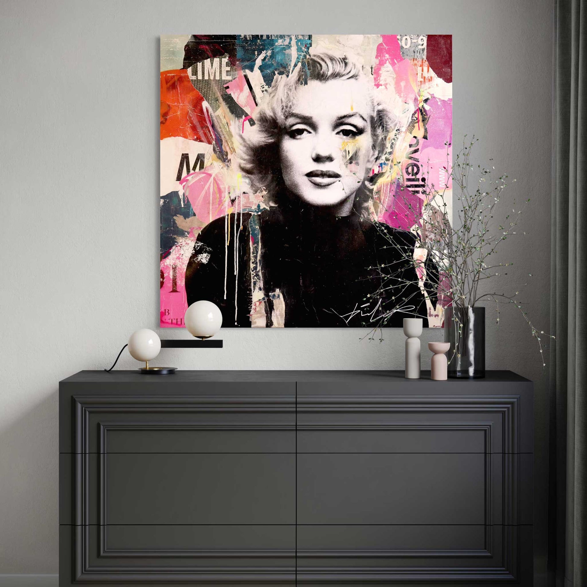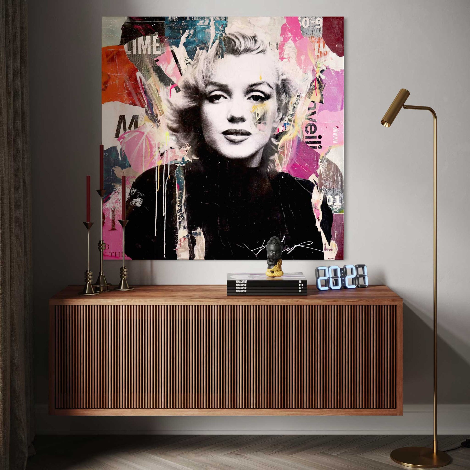 Aus handabgerissenen Plakaten, alten Werkzeugen und urbanen Fundstücken entstehen auf großen Leinwänden vielschichtige Werke mit ikonischen Persönlichkeiten wie Brigitte Bardot oder Kate Moss.