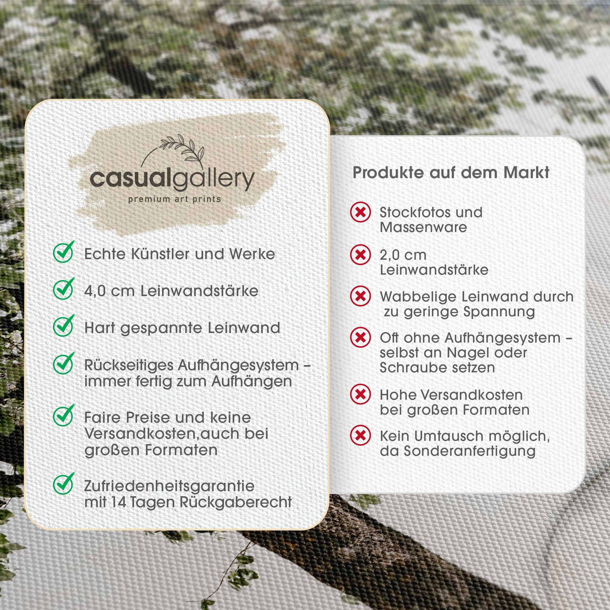 Wir hoffen, dass du mit deinem casualgallery Kunstwerk zufrieden bist. Wenn du ein anderes Produkt, eine andere Größe oder eine Rückerstattung wünscht, akzeptieren wir dennoch Umtausch und Rücksendungen innerhalb von 14 Tagen.