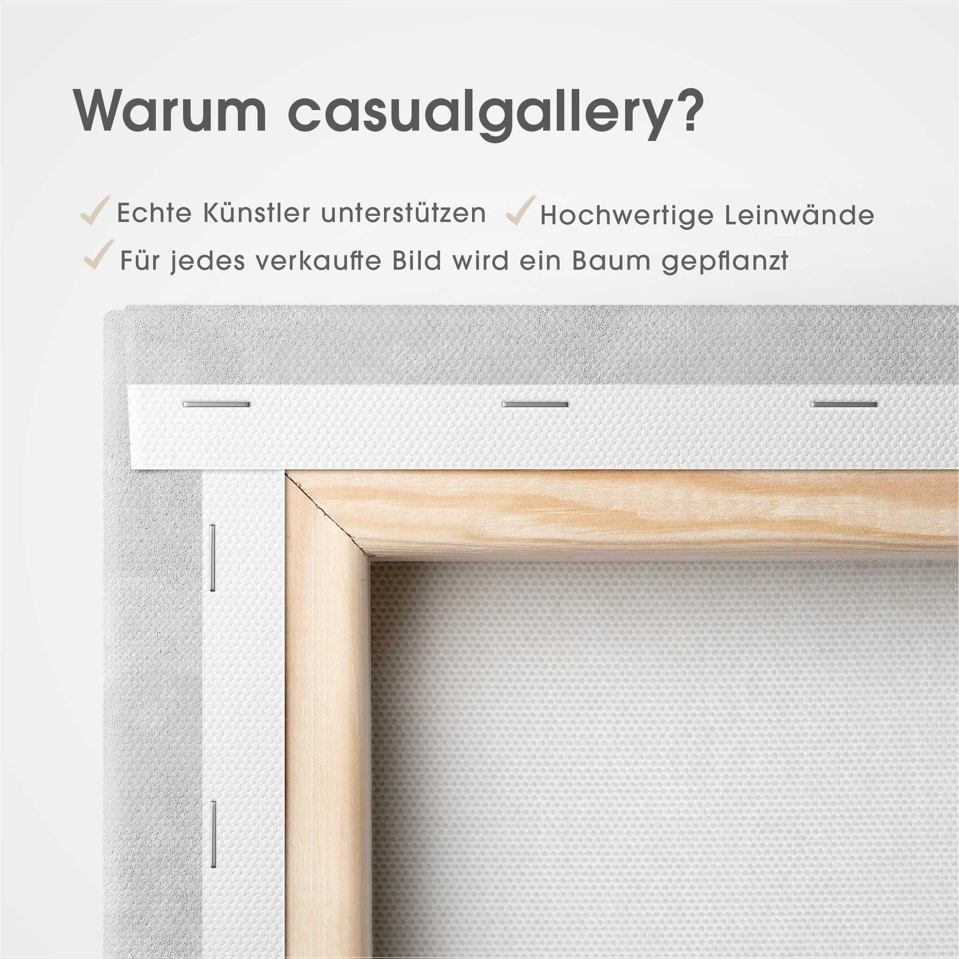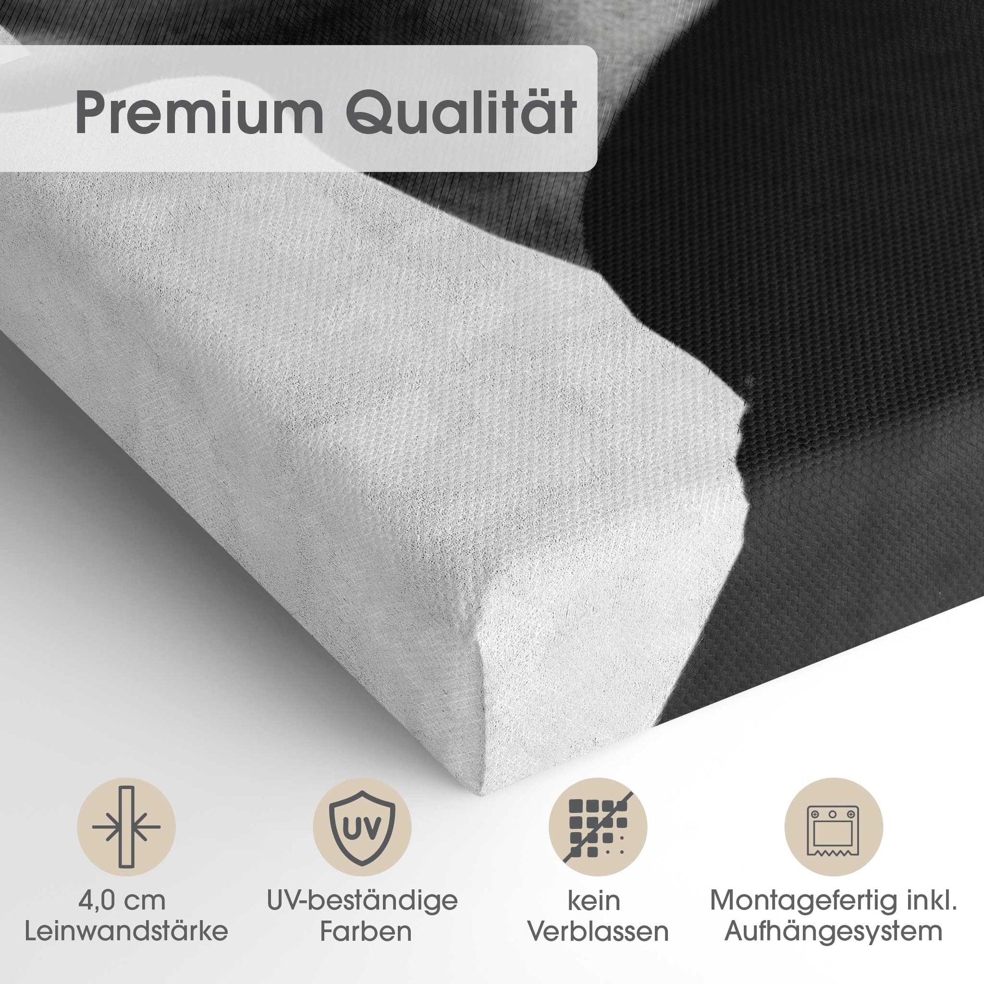 Der 4,0 cm starke Holzrahmen verleiht der Leinwand Tiefe und Stabilität. Jedes Bild wird sorgfältig aufgespannt, die Kanten sauber verarbeitet. Deine Leinwand kommt fix & fertig bei dir an – einfach auspacken, aufhängen und den neuen Look genießen.