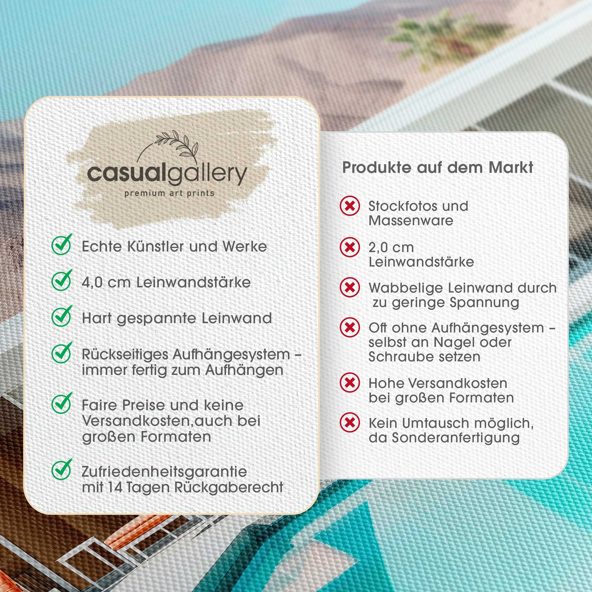 Satte Farben, gestochen scharfe Details, UV-beständig. Auf 4,0 cm starken Holzrahmen gespannt und direkt fertig zum Aufhängen geliefert.
