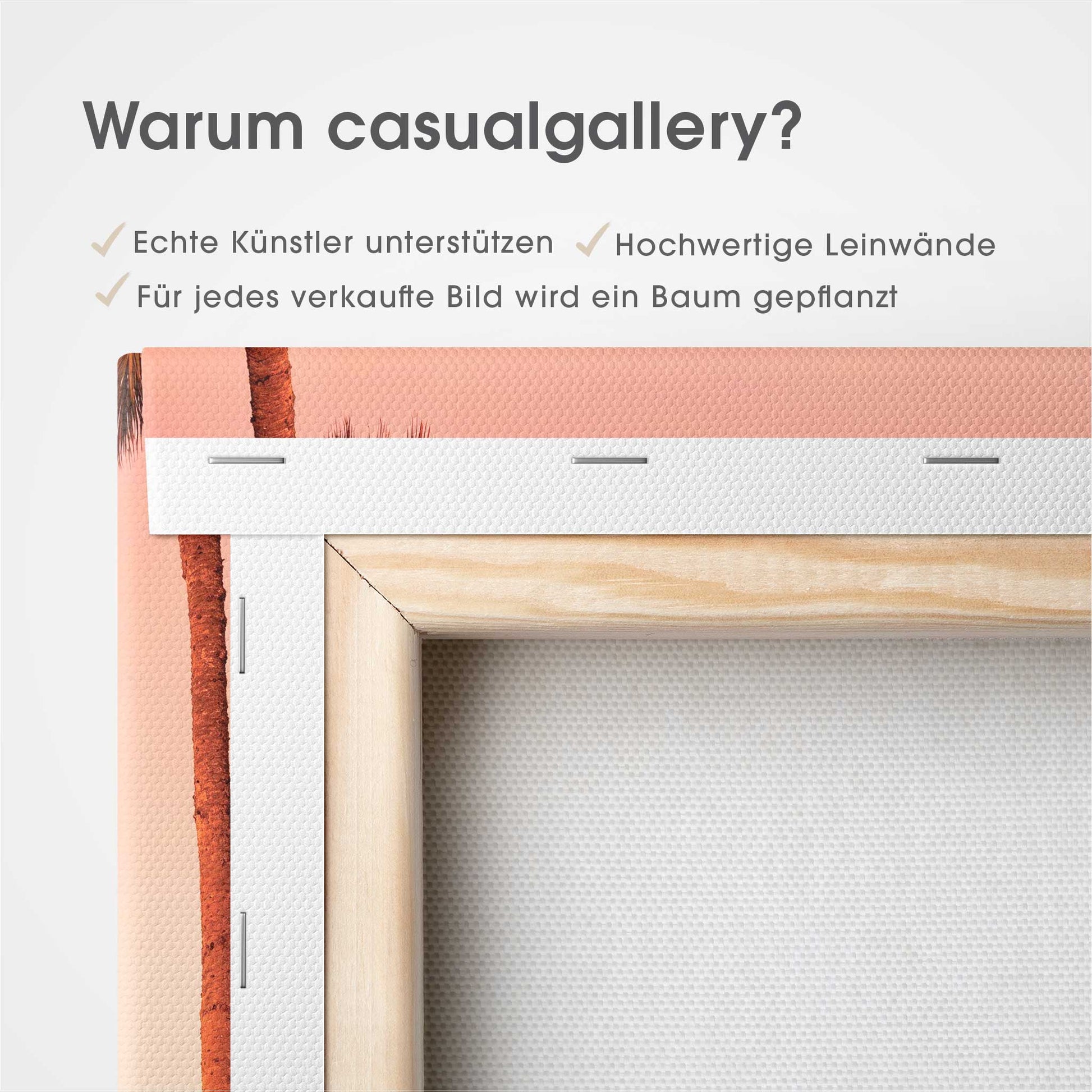 Der 4,0 cm starke Holzrahmen verleiht der Leinwand Tiefe und Stabilität. Jedes Bild wird sorgfältig aufgespannt, die Kanten sauber verarbeitet. Deine Leinwand kommt fix & fertig bei dir an – einfach auspacken, aufhängen und den neuen Look genießen.
