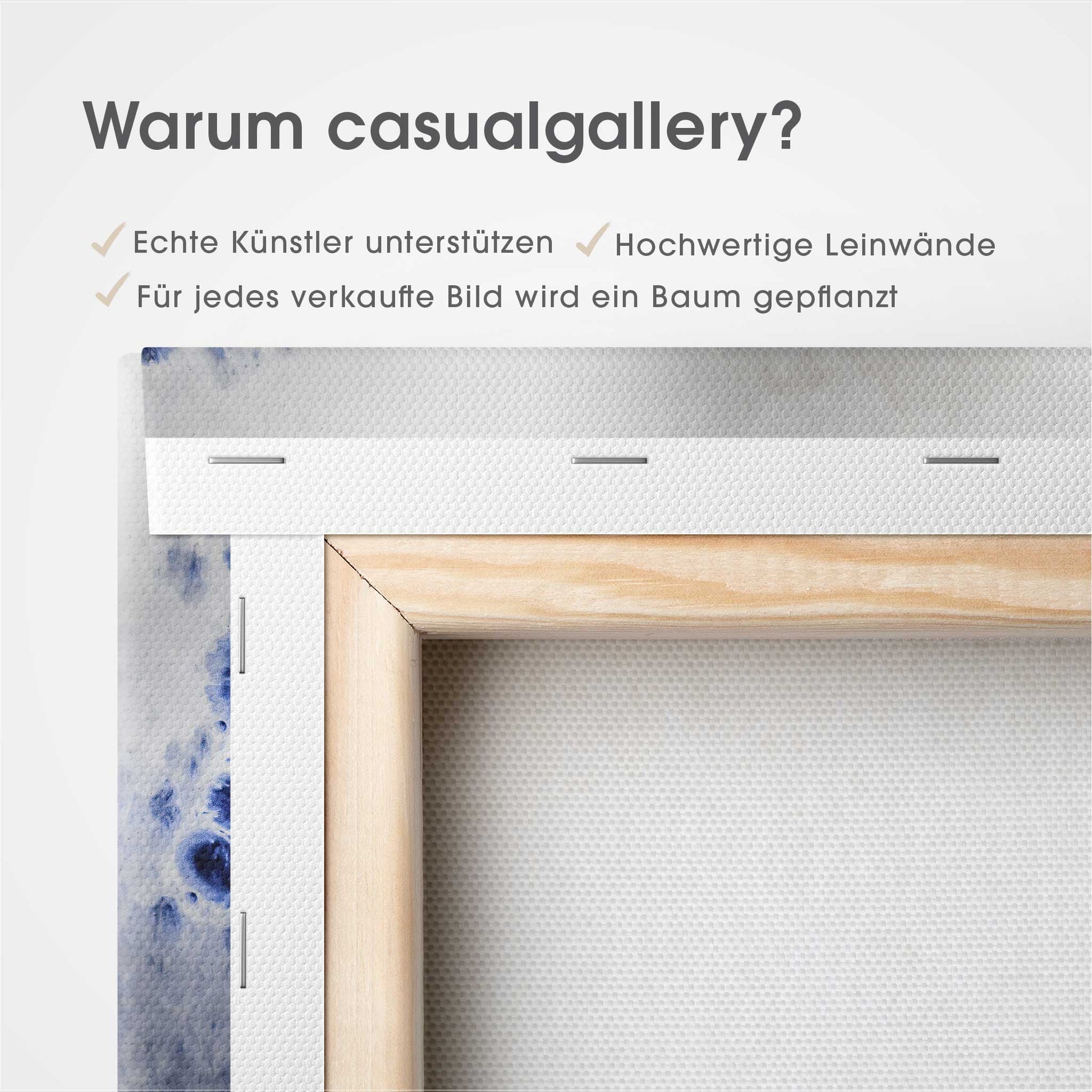 Der 4,0 cm starke Holzrahmen verleiht der Leinwand Tiefe und Stabilität. Jedes Bild wird sorgfältig aufgespannt, die Kanten sauber verarbeitet. Deine Leinwand kommt fix & fertig bei dir an – einfach auspacken, aufhängen und den neuen Look genießen.