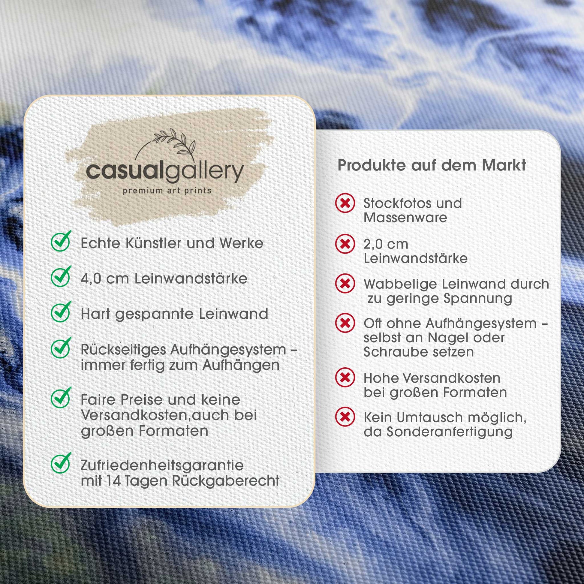 Satte Farben, gestochen scharfe Details, UV-beständig. Auf 4,0 cm starken Holzrahmen gespannt und direkt fertig zum Aufhängen geliefert.