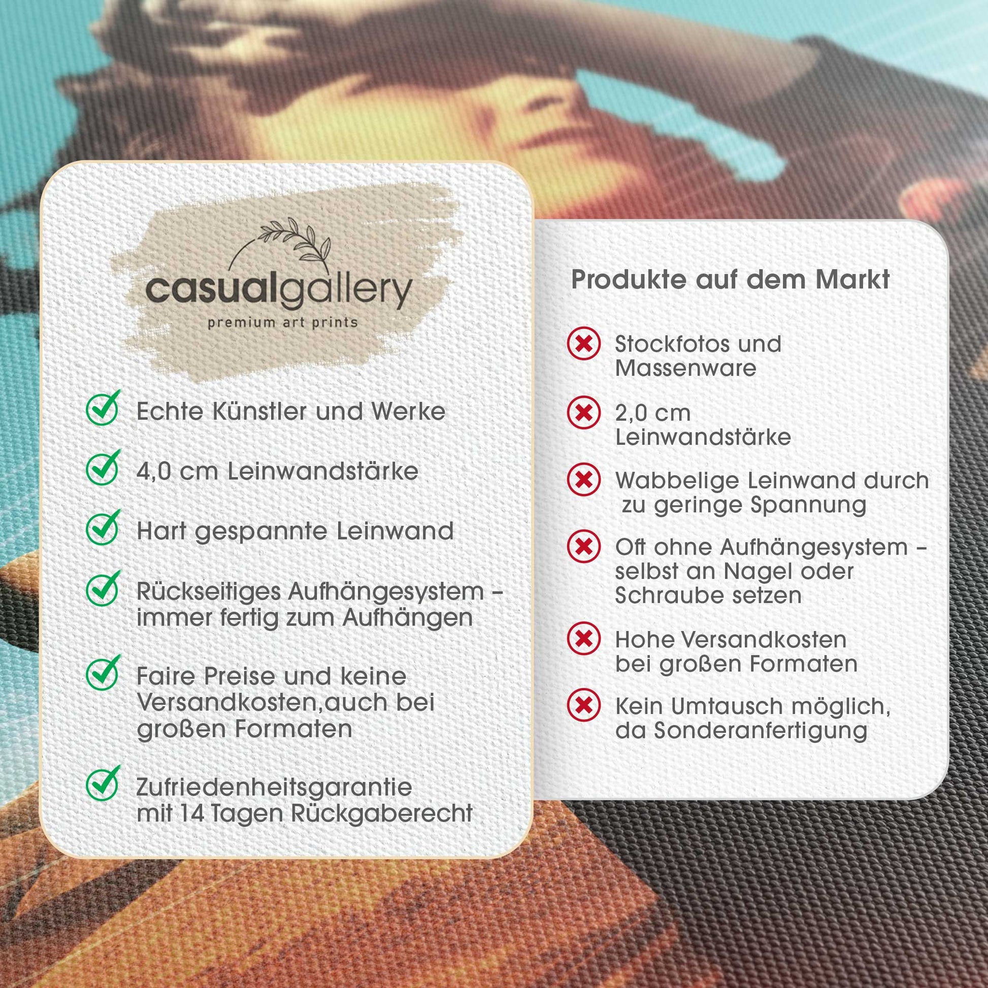 Satte Farben, gestochen scharfe Details, UV-beständig. Auf 4,0 cm starken Holzrahmen gespannt und direkt fertig zum Aufhängen geliefert.