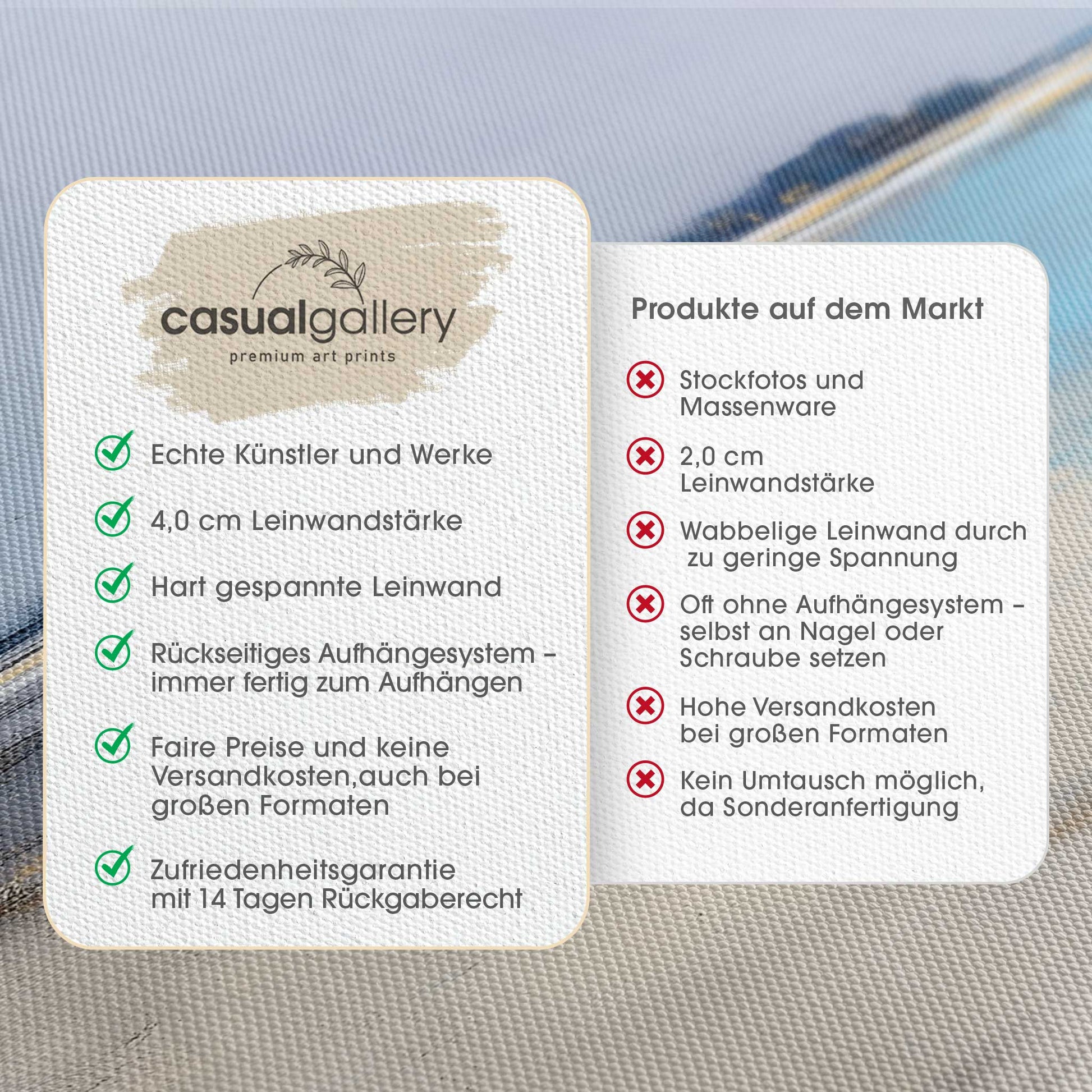 Wir hoffen, dass du mit deinem casualgallery Kunstwerk zufrieden bist. Wenn du ein anderes Produkt, eine andere Größe oder eine Rückerstattung wünscht, akzeptieren wir dennoch Umtausch und Rücksendungen innerhalb von 14 Tagen.