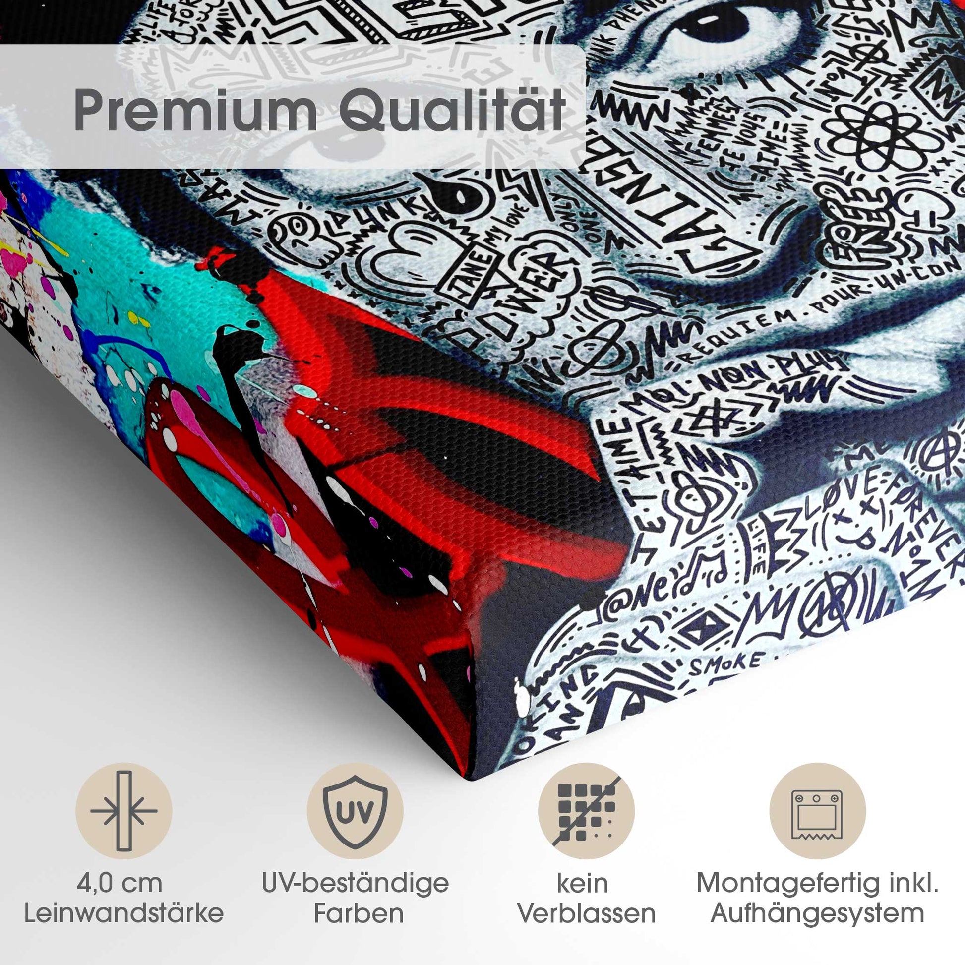 Der 4,0 cm starke Holzrahmen verleiht der Leinwand Tiefe und Stabilität. Jedes Bild wird sorgfältig aufgespannt, die Kanten sauber verarbeitet. Deine Leinwand kommt fix & fertig bei dir an – einfach auspacken, aufhängen und den neuen Look genießen.