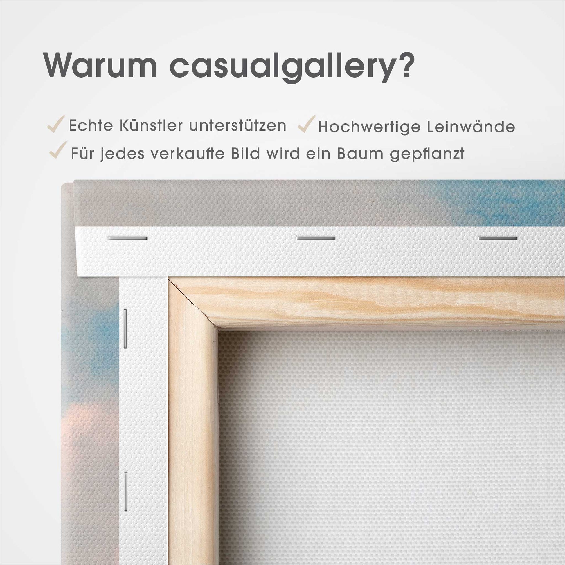 Der 4,0 cm starke Holzrahmen verleiht der Leinwand Tiefe und Stabilität. Jedes Bild wird sorgfältig aufgespannt, die Kanten sauber verarbeitet. Deine Leinwand kommt fix & fertig bei dir an – einfach auspacken, aufhängen und den neuen Look genießen.