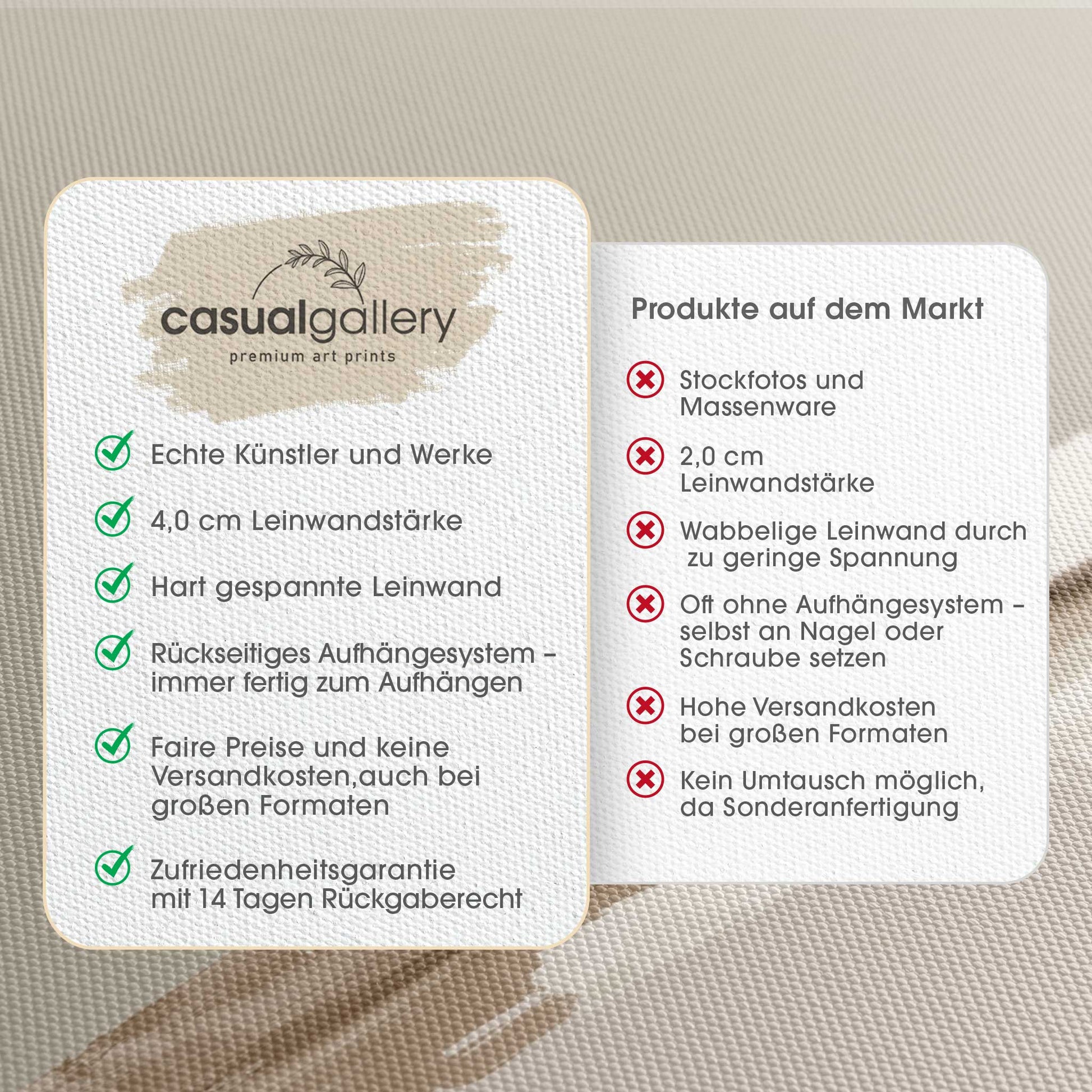 Wir hoffen, dass du mit deinem casualgallery Kunstwerk zufrieden bist. Wenn du ein anderes Produkt, eine andere Größe oder eine Rückerstattung wünscht, akzeptieren wir dennoch Umtausch und Rücksendungen innerhalb von 14 Tagen.