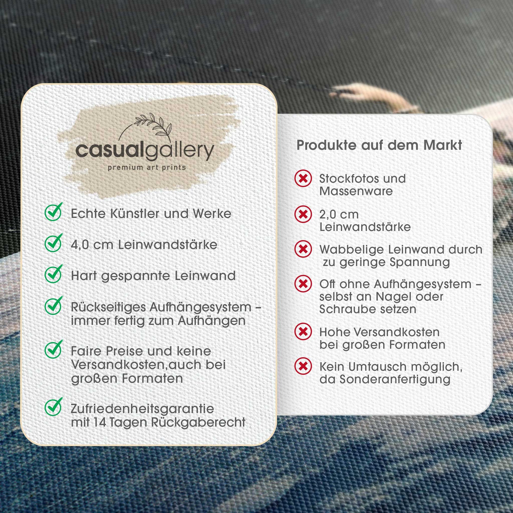 Satte Farben, gestochen scharfe Details, UV-beständig. Auf 4,0 cm starken Holzrahmen gespannt und direkt fertig zum Aufhängen geliefert.