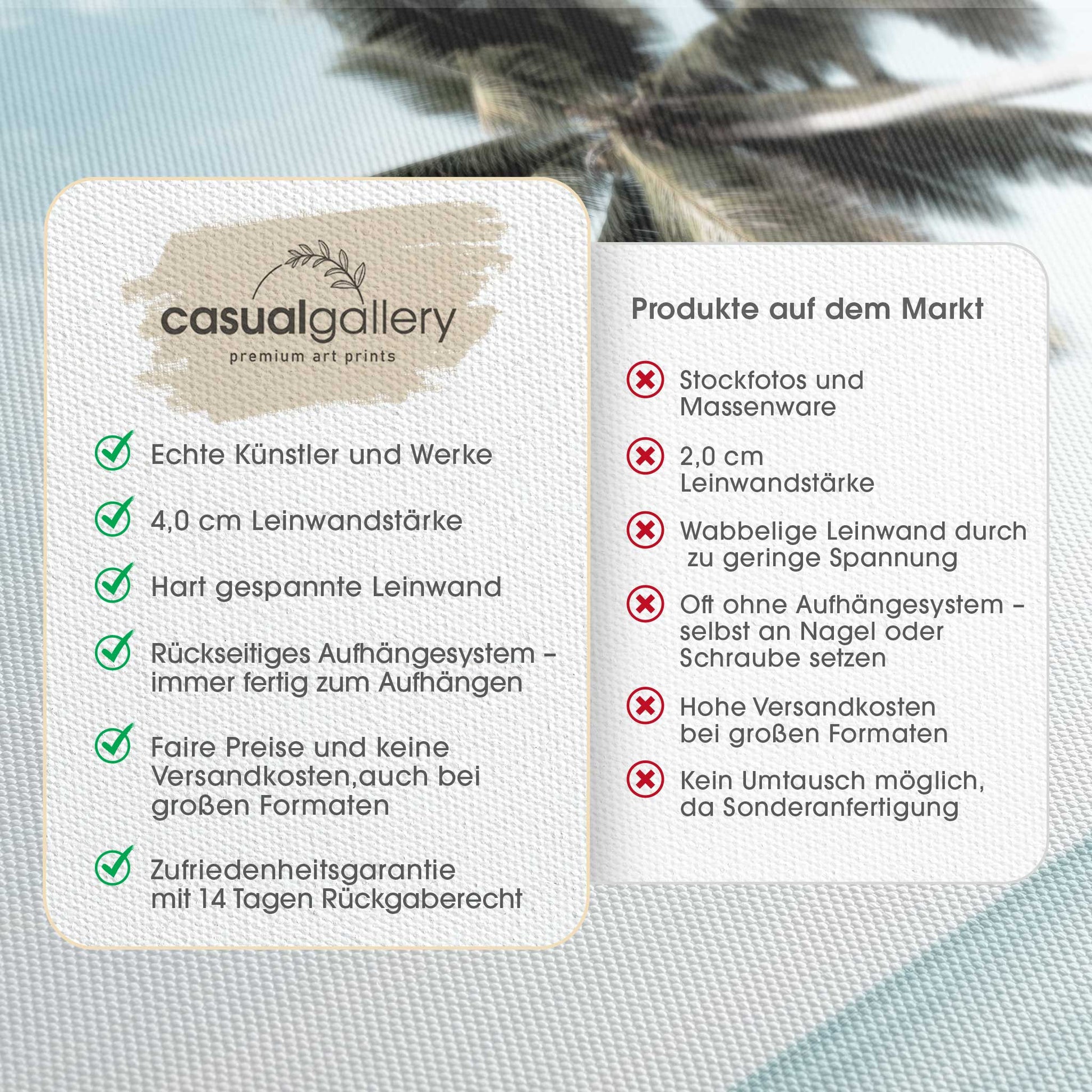 Wir hoffen, dass du mit deinem casualgallery Kunstwerk zufrieden bist. Wenn du ein anderes Produkt, eine andere Größe oder eine Rückerstattung wünscht, akzeptieren wir dennoch Umtausch und Rücksendungen innerhalb von 14 Tagen.