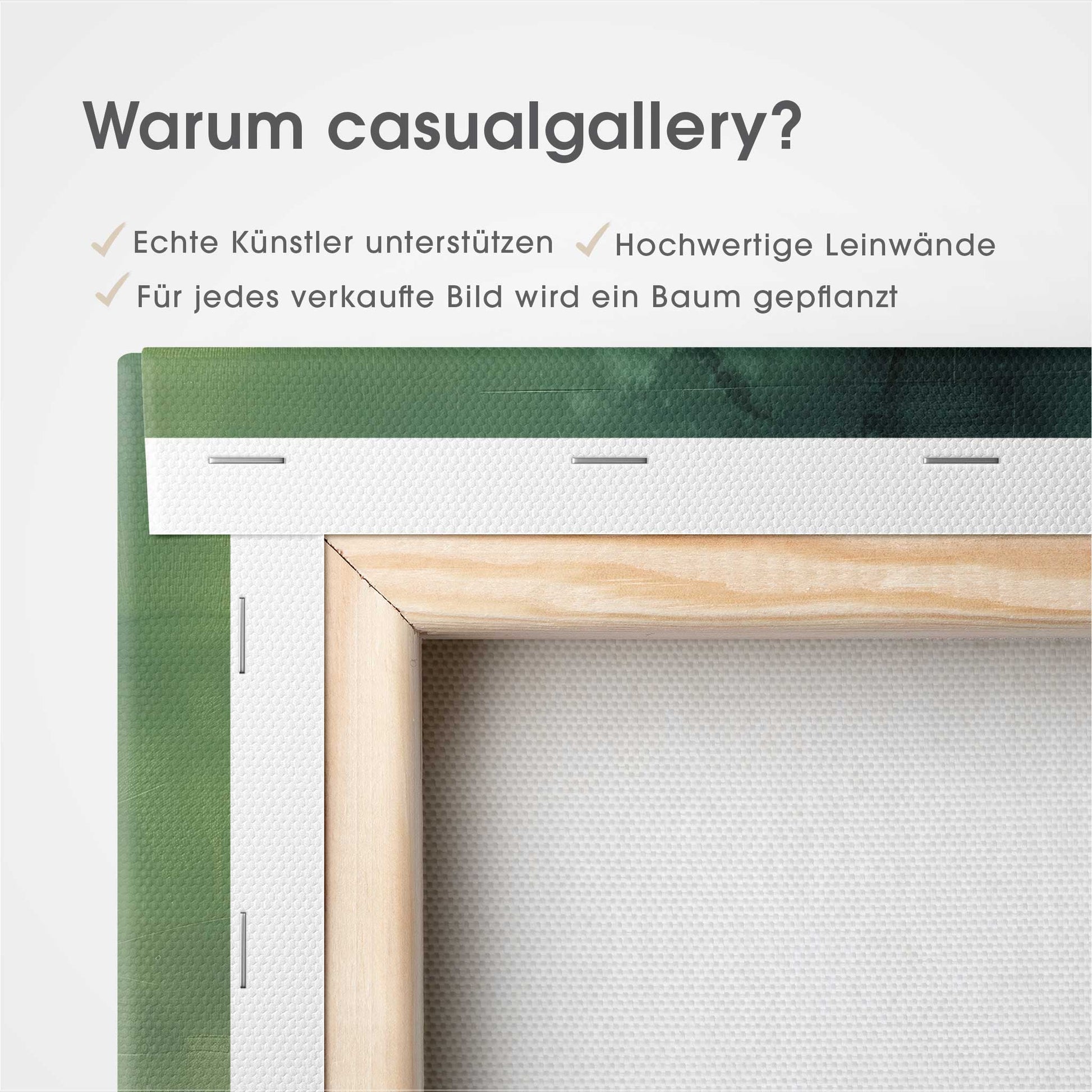 Der 4,0 cm starke Holzrahmen verleiht der Leinwand Tiefe und Stabilität. Jedes Bild wird sorgfältig aufgespannt, die Kanten sauber verarbeitet. Deine Leinwand kommt fix & fertig bei dir an – einfach auspacken, aufhängen und den neuen Look genießen.